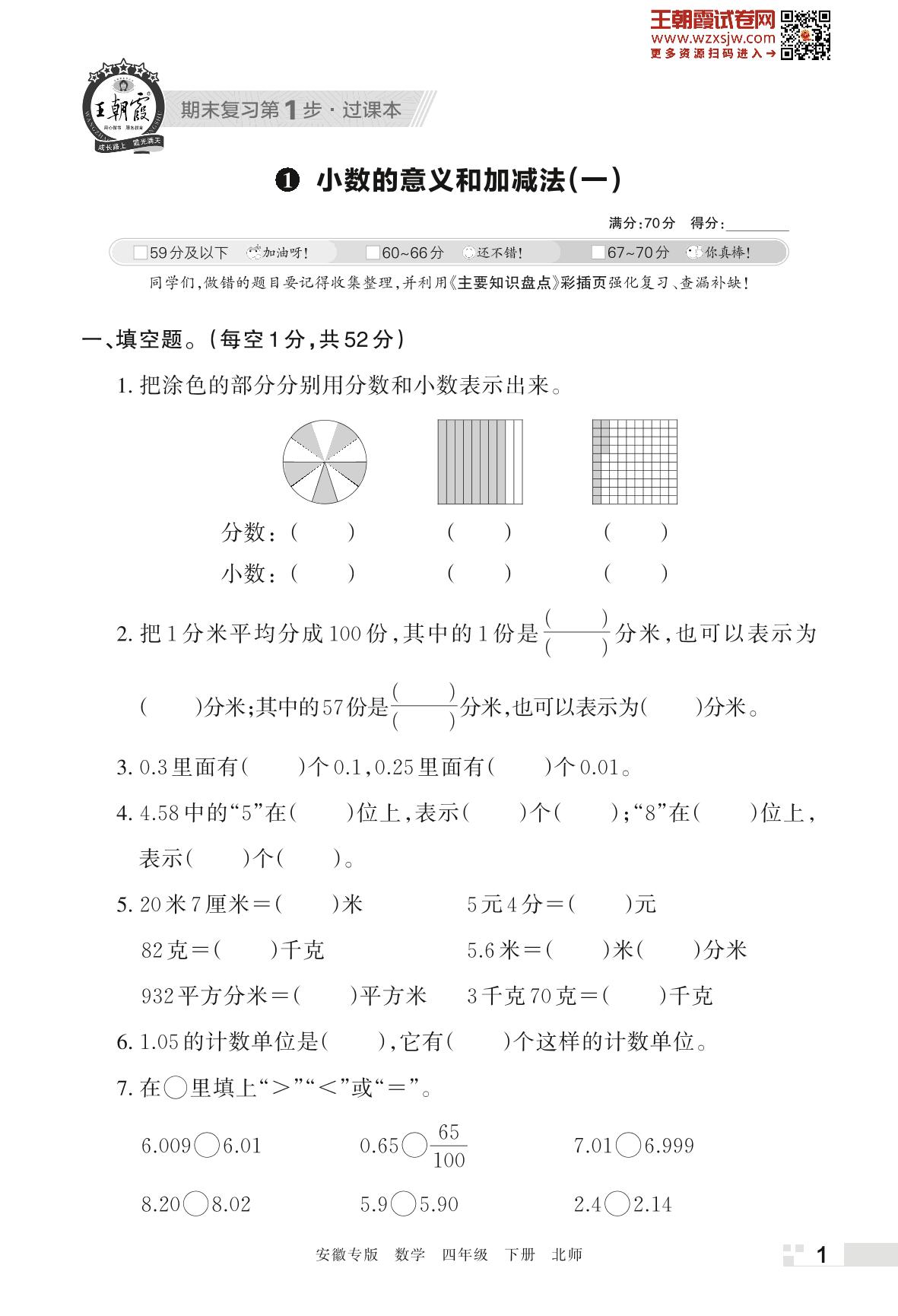 王朝霞期末过课本——1 小数的意义和加减法(一)四年级下册数学(北师版)_R230421135212269