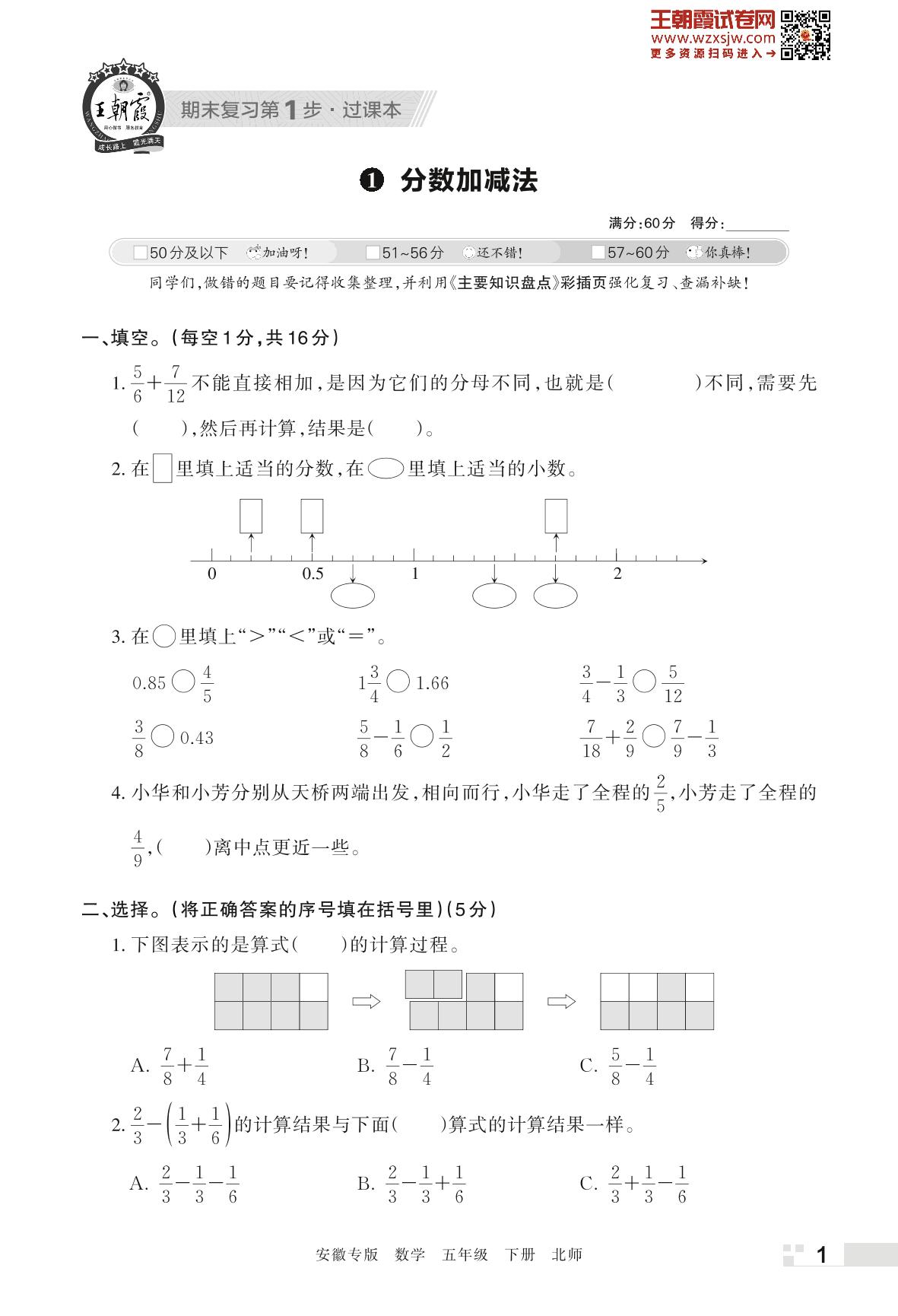 王朝霞期末过课本——1 分数加减法五年级下册数学(北师版)_R230421142351171