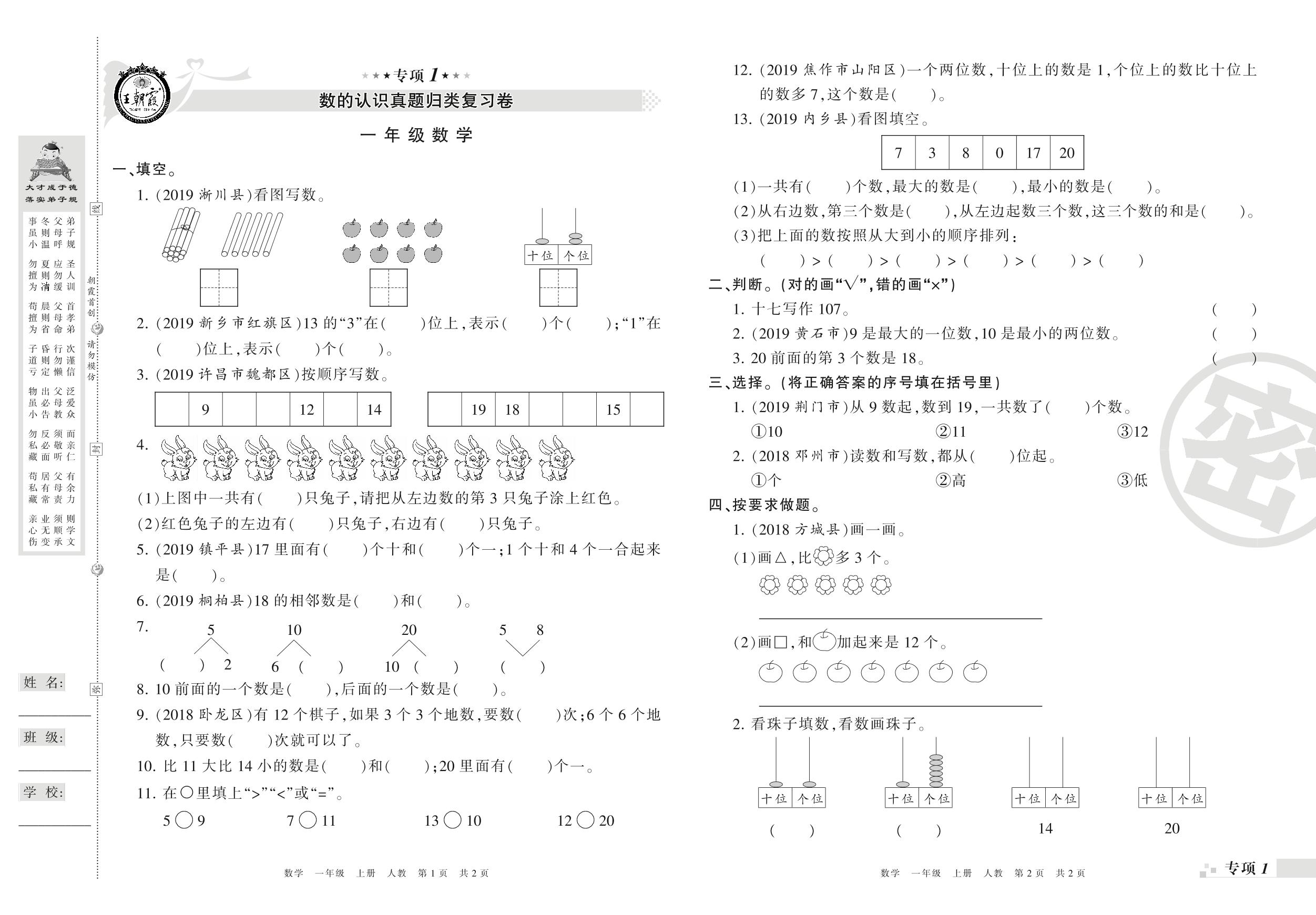 王朝霞期末专项卷——数的认识、计算真题归类复习一年级上册数学(人教版)_R210802215240【0】