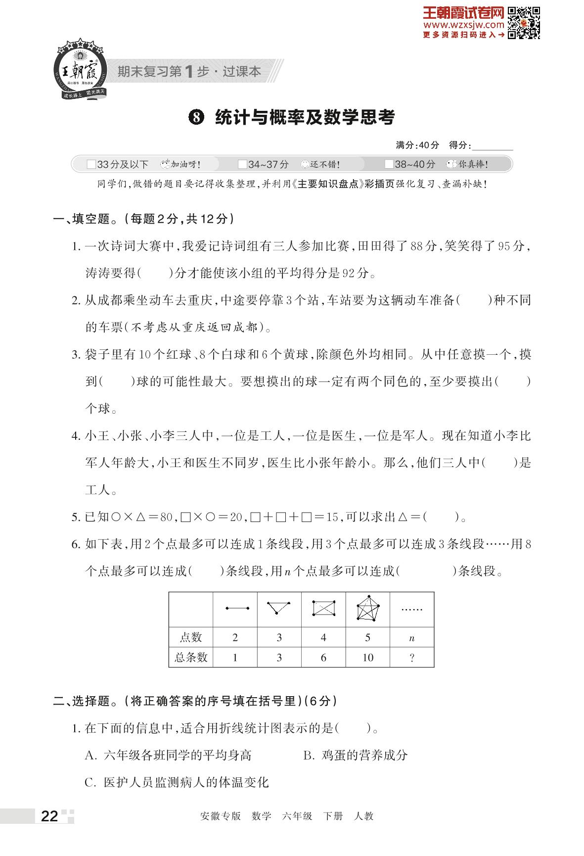 王朝霞期末过课本——8 统计与概率及数学思考六年级下册数学(人教版)_R230421152838470