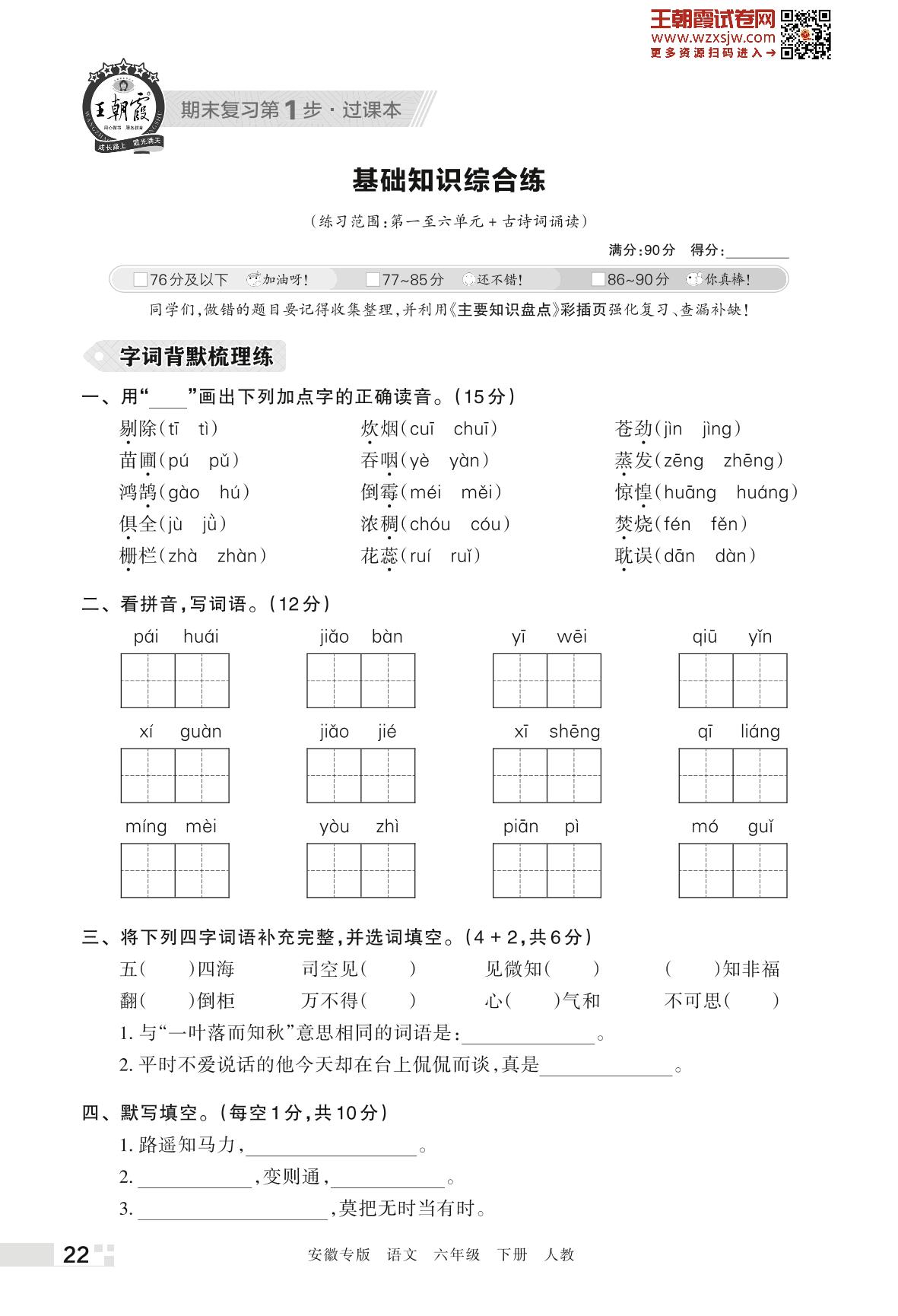 王朝霞期末过课本——第八单元 基础知识梳理练六年级下册语文(人教版)