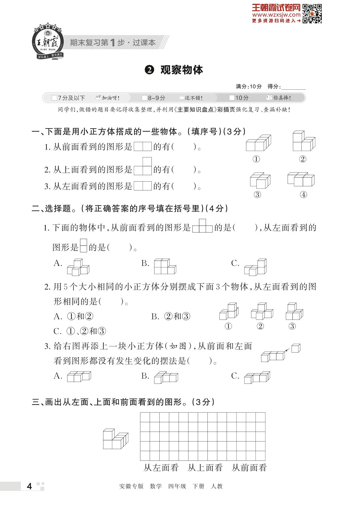 王朝霞期末过课本——2 观察物体四年级下册数学(人教版)_R230421162814742