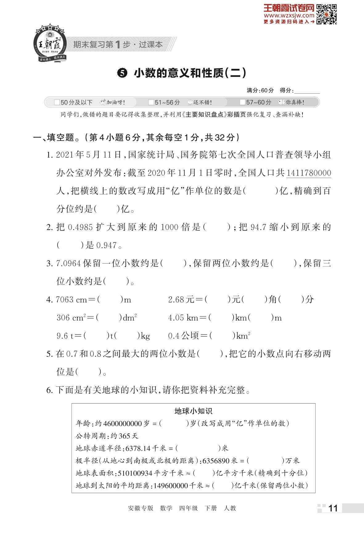 王朝霞期末过课本——5 小数的意义和性质(二)四年级下册数学(人教版)_R230421162814777