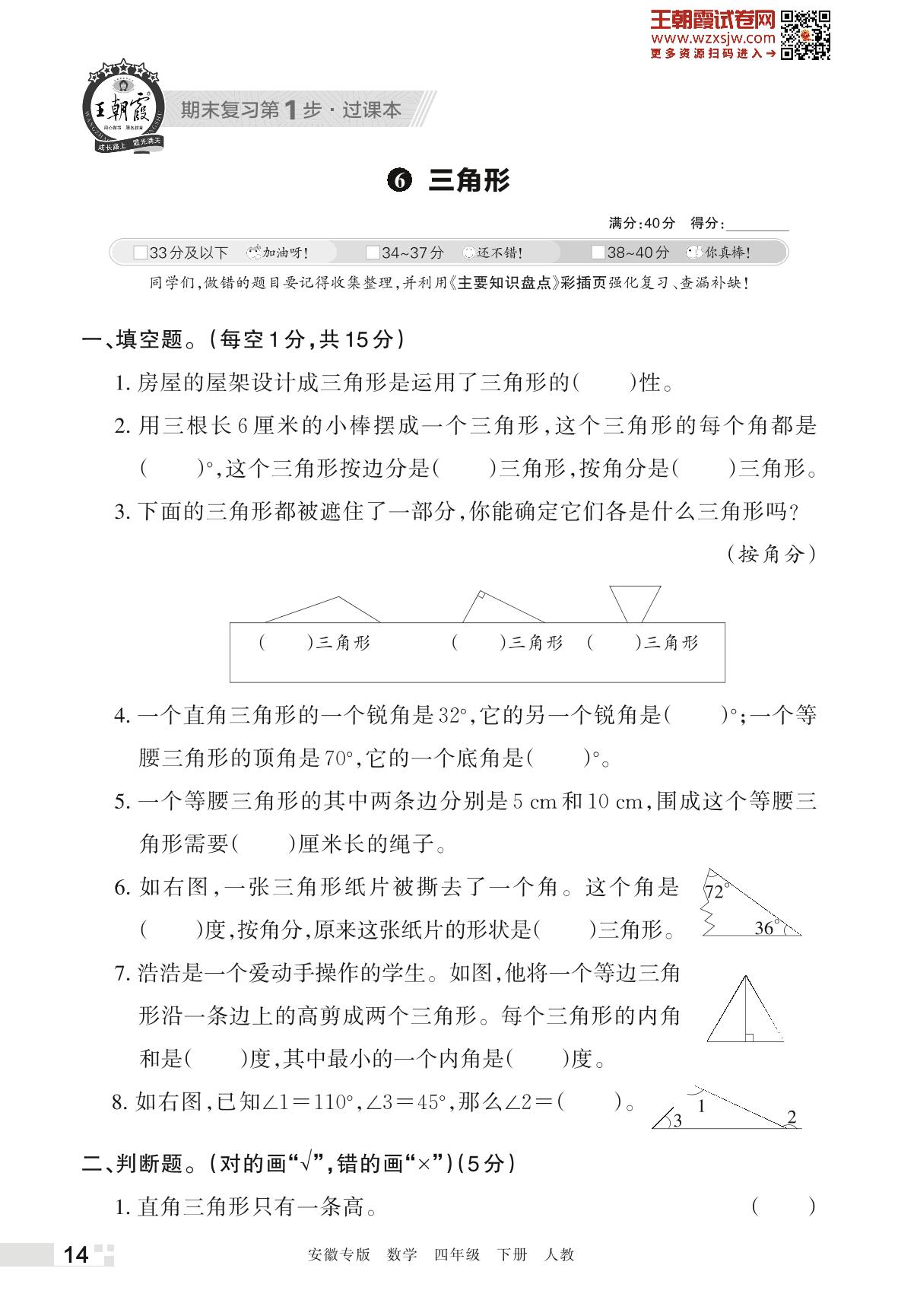 王朝霞期末过课本——6 三角形四年级下册数学(人教版)_R230421162815831