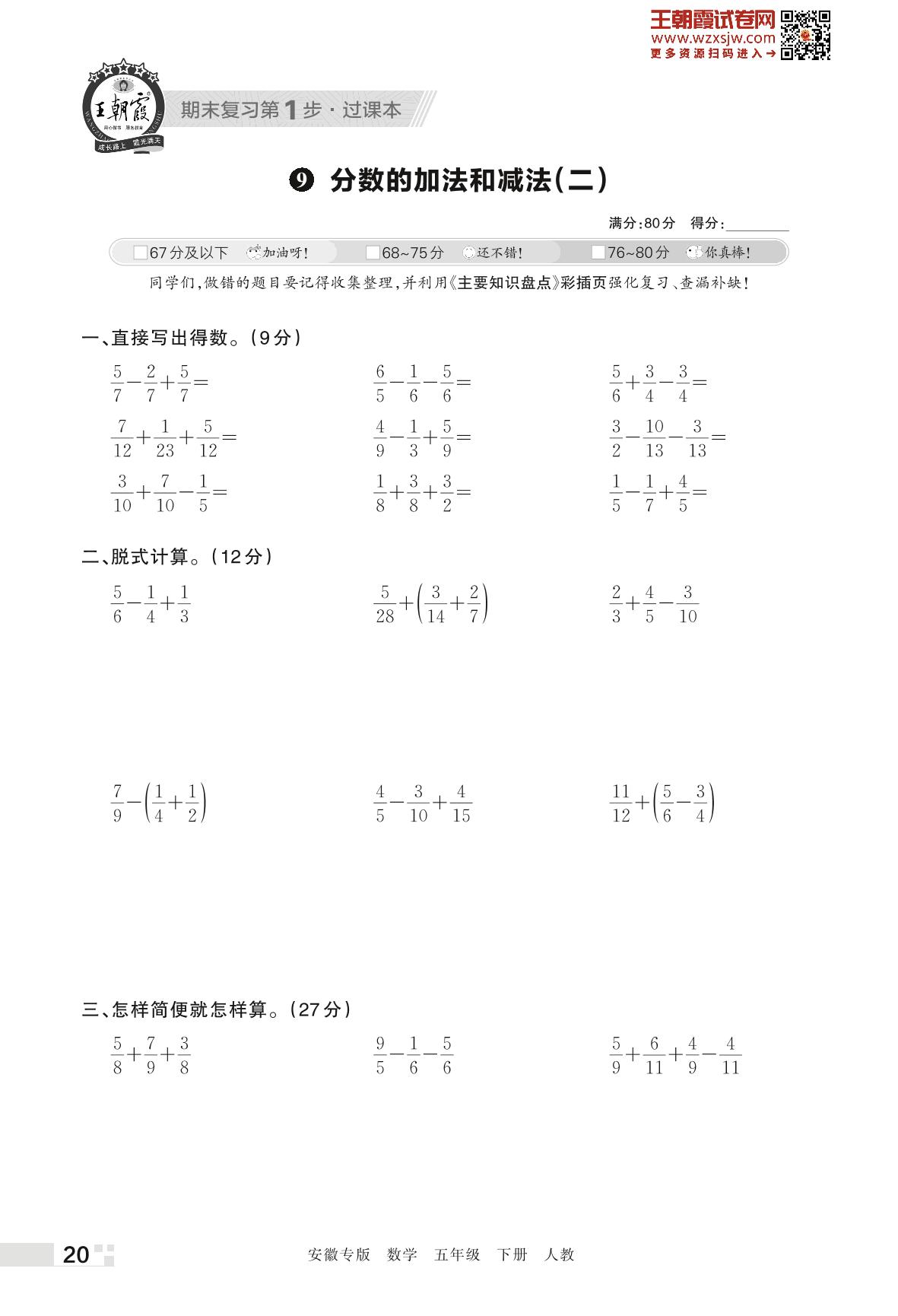 王朝霞期末过课本——9 分数的加法和减法(二)五年级下册数学(人教版)_R230421164044022
