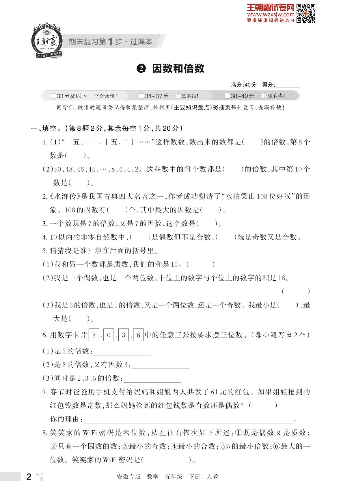 王朝霞期末过课本——2 因数和倍数五年级下册数学(人教版)