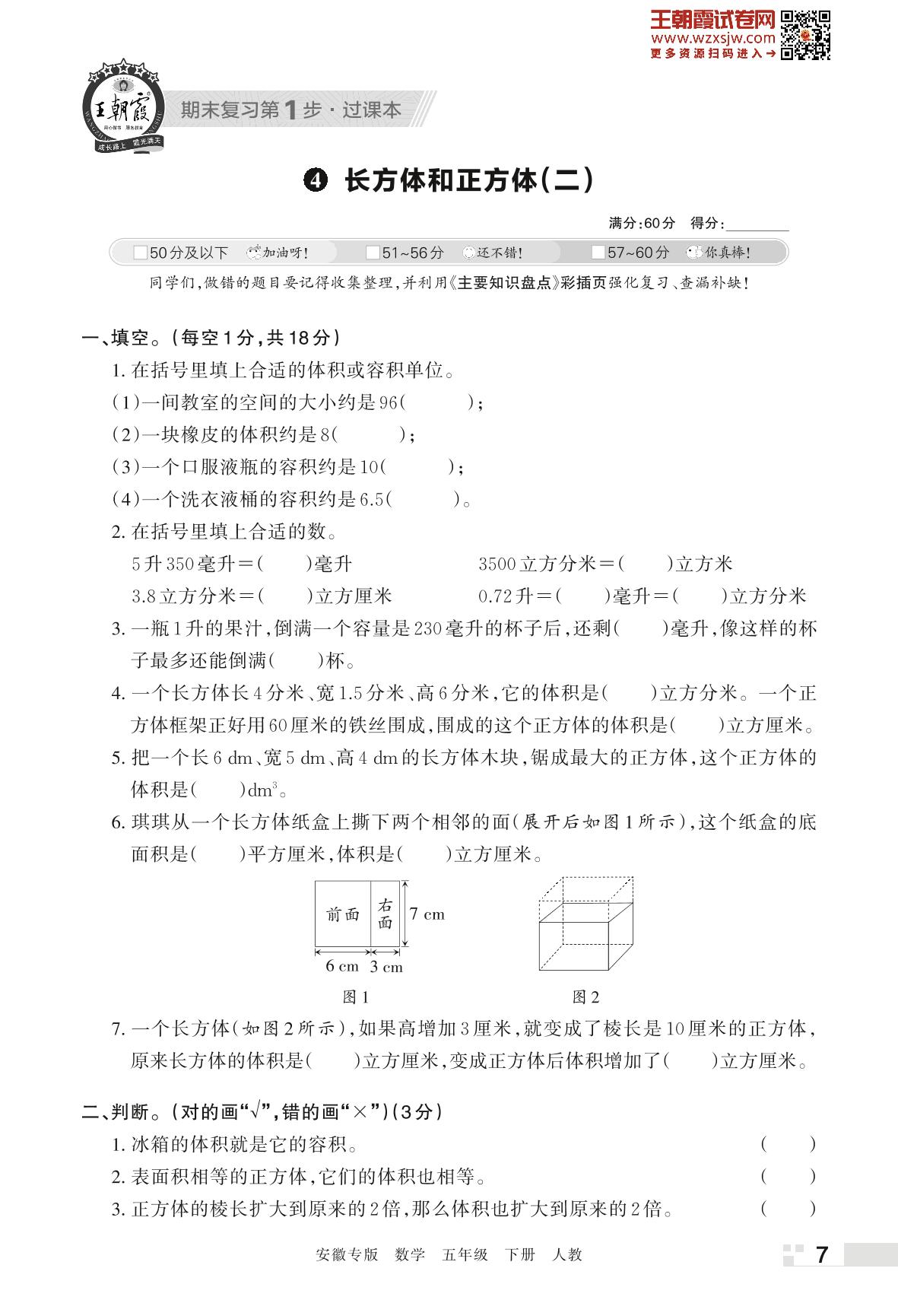 王朝霞期末过课本——4 长方体和正方体(二)五年级下册数学(人教版)_R230421164044570