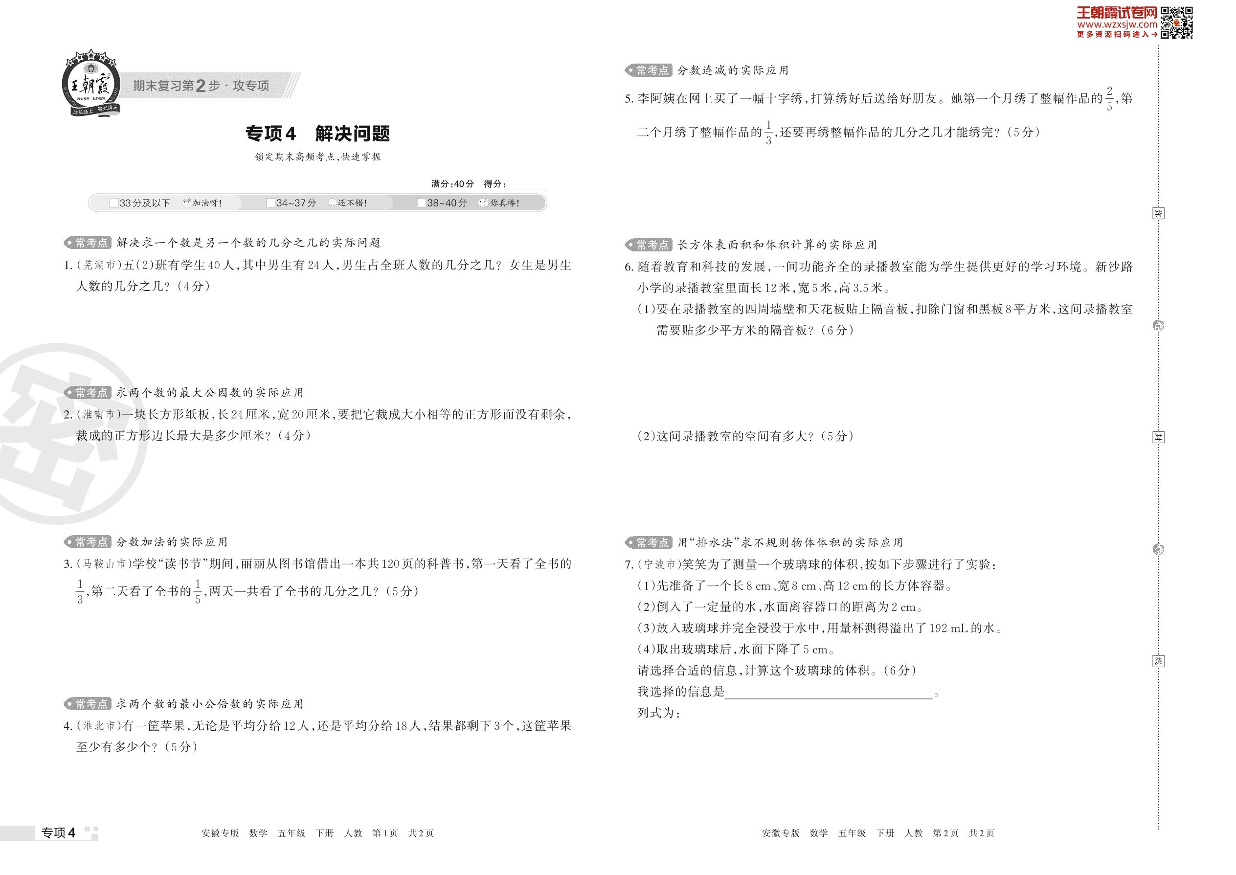 王朝霞期末专项卷——解决问题五年级下册数学(人教版)_R230421164045303【4】