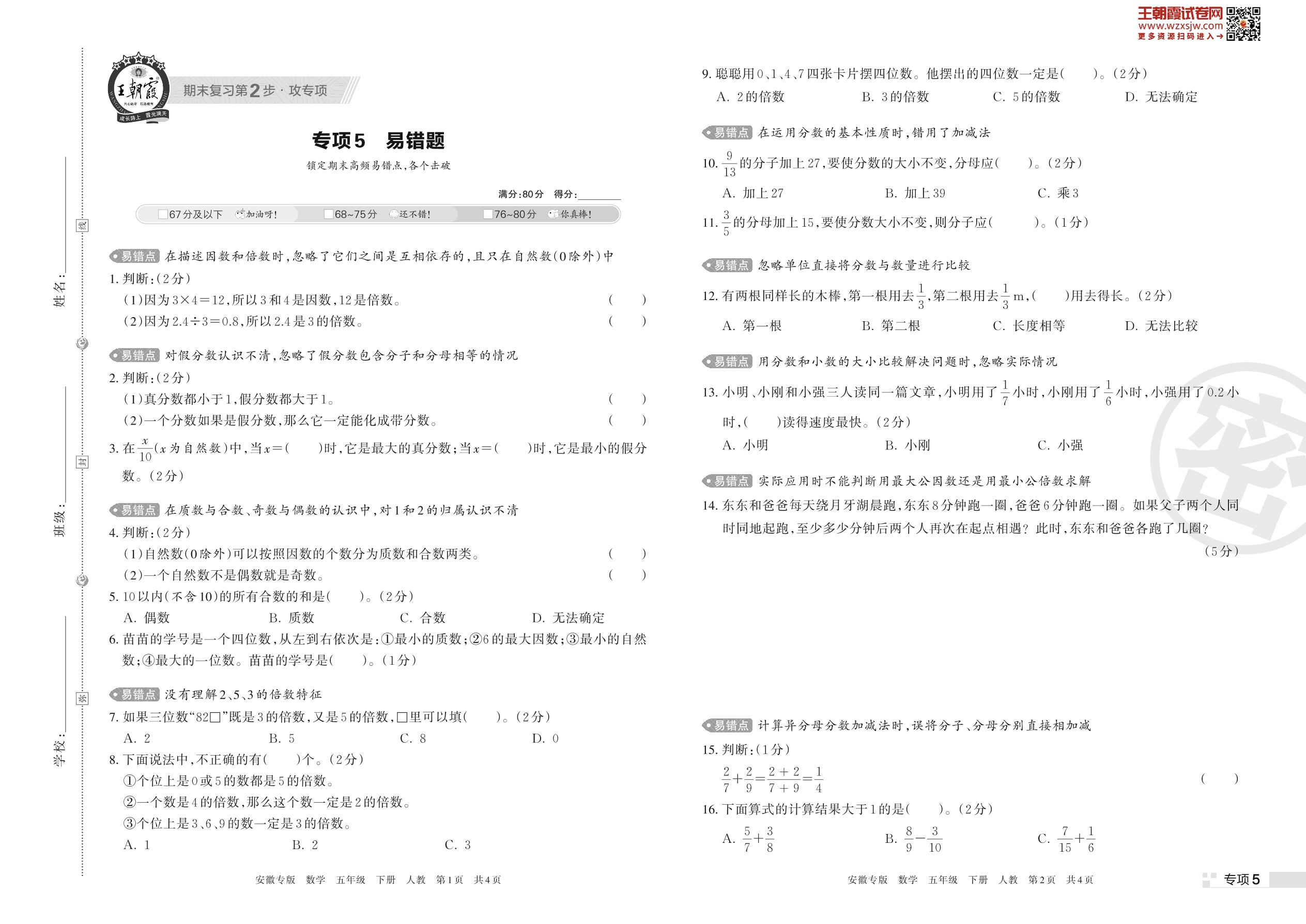 王朝霞期末专项卷——易错题五年级下册数学(人教版)_R230421164045871【5】
