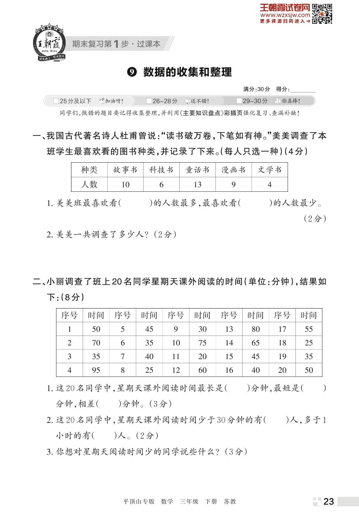 王朝霞期末过课本——9 数据的收集和整理三年级下册数学(苏教版)