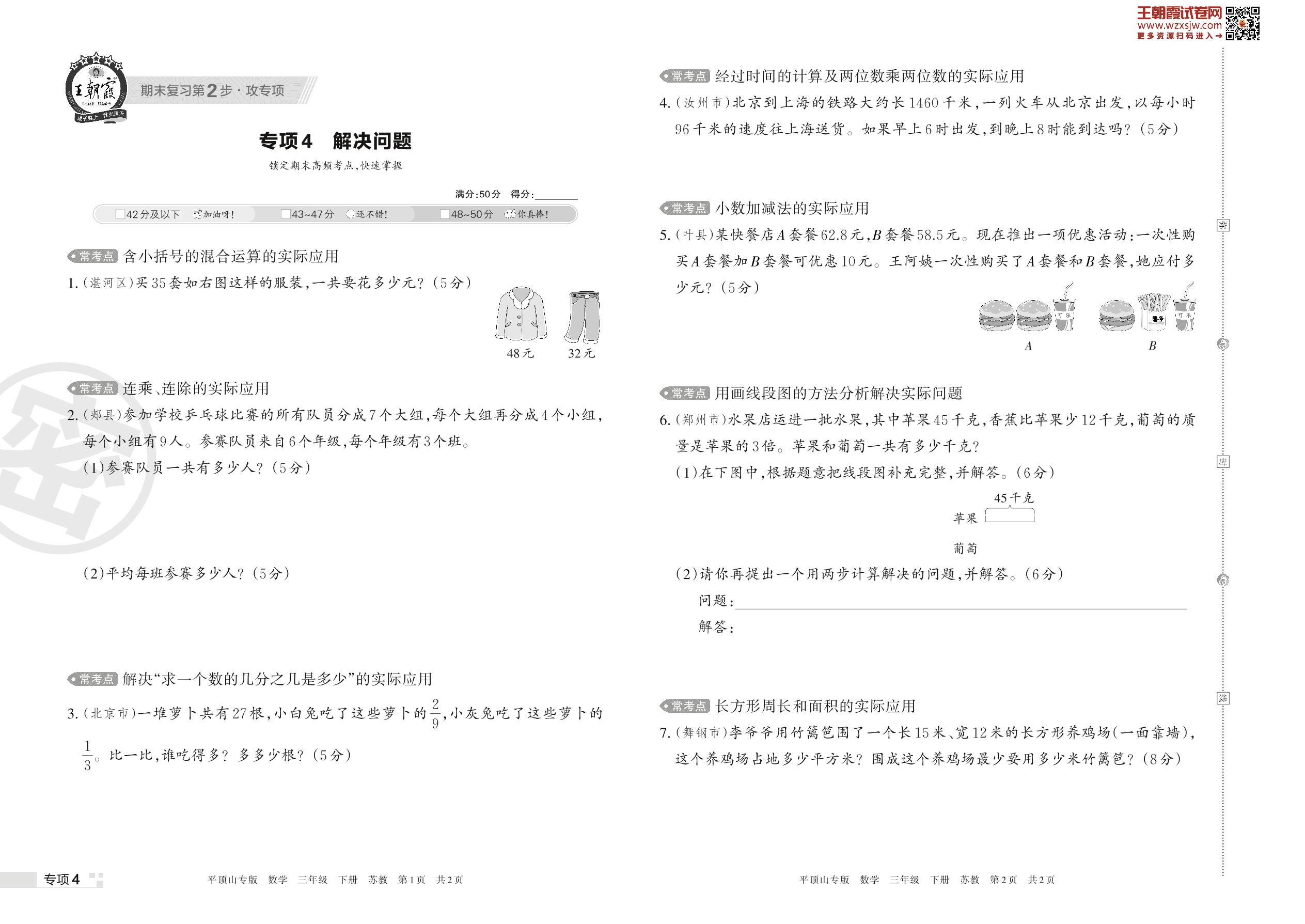 王朝霞期末专项卷——解决问题三年级下册数学(苏教版)_R230421164849937【4】