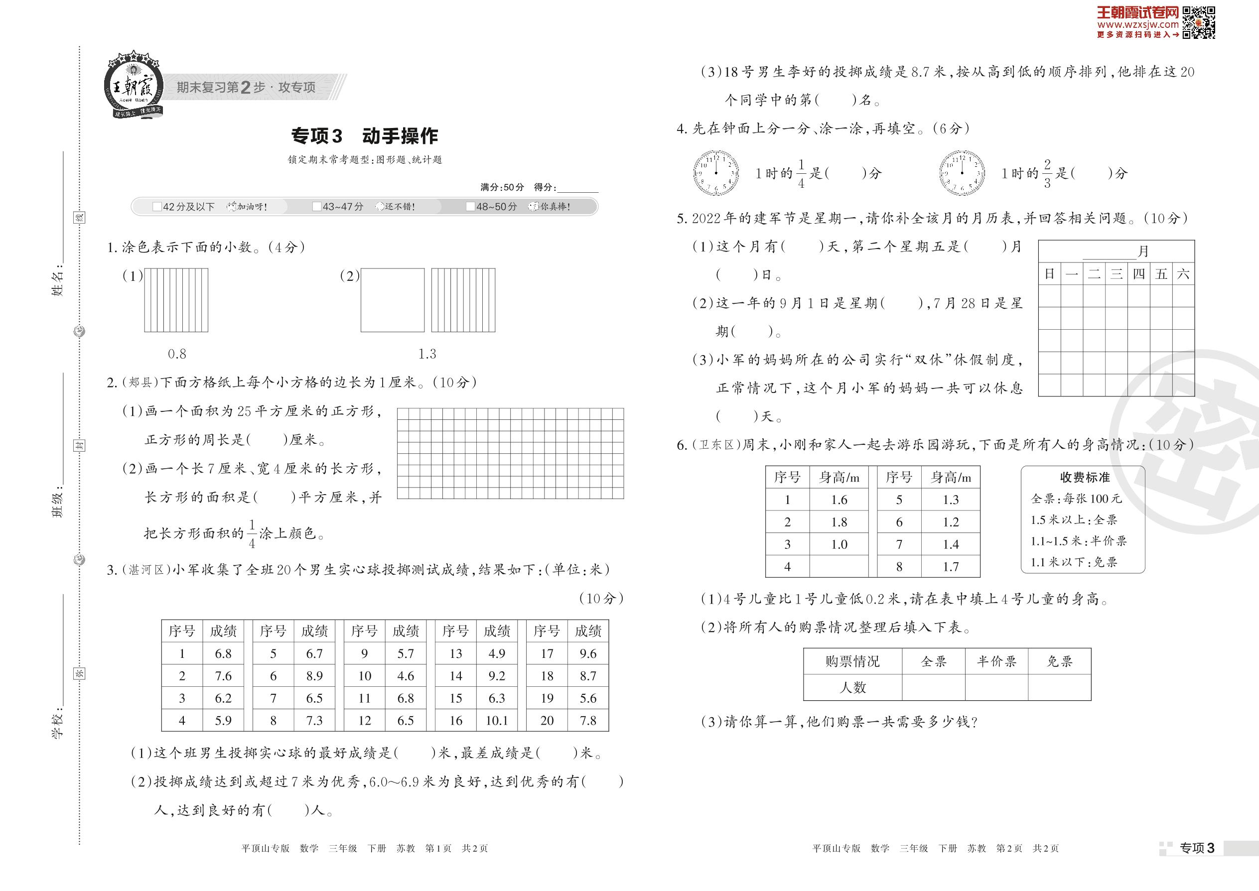 王朝霞期末专项卷——动手操作三年级下册数学(苏教版)_R230421164849253【3】