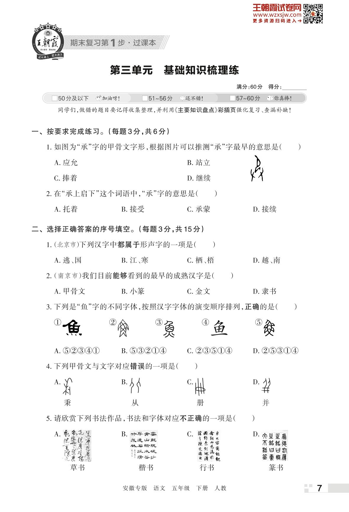 王朝霞期末过课本——第三单元 基础知识梳理练五年级下册语文(人教版)_R230421164951398