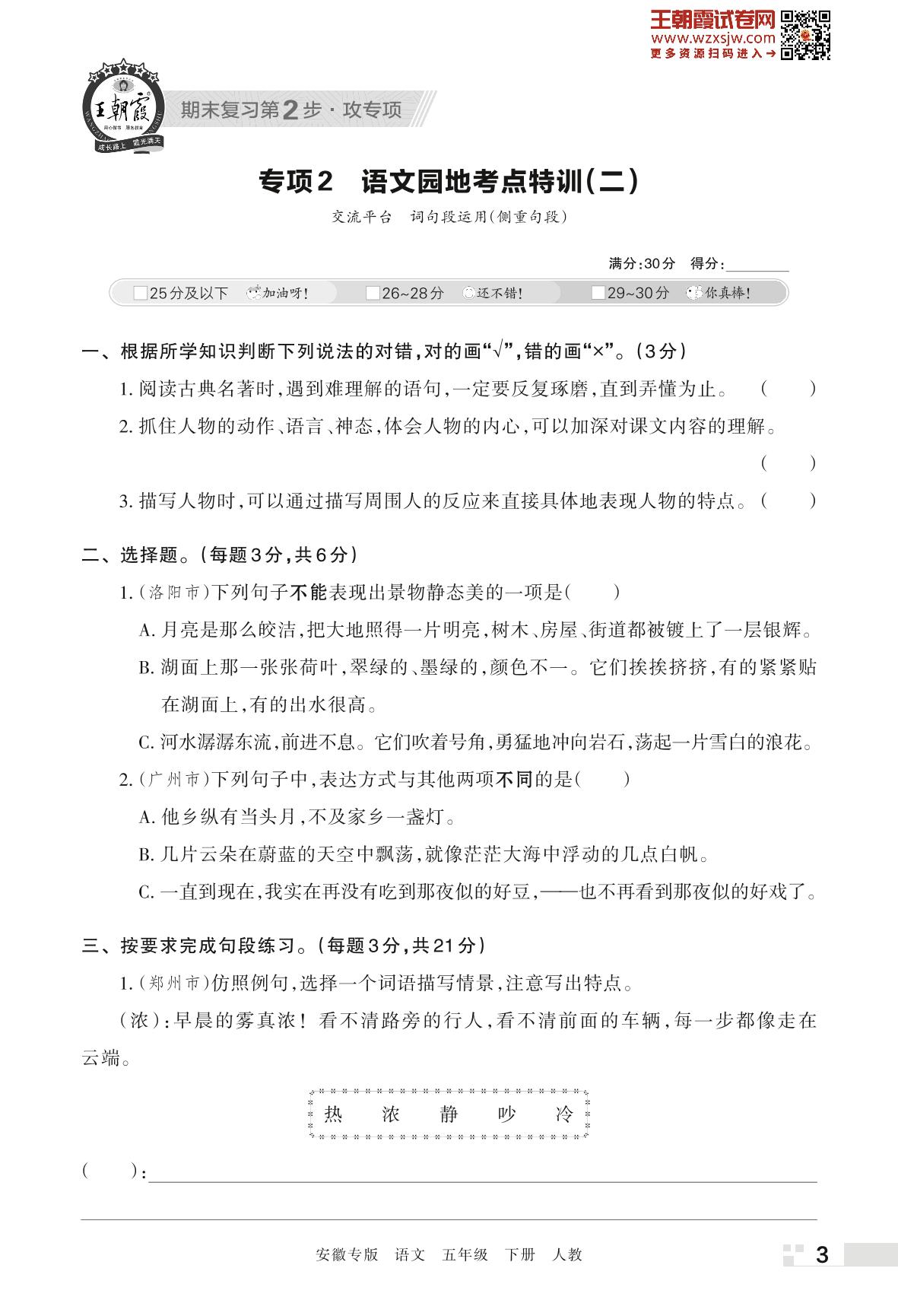 王朝霞期末专项卷——语文园地考点特训(二)五年级下册语文(人教版)_R230421164951685【2】