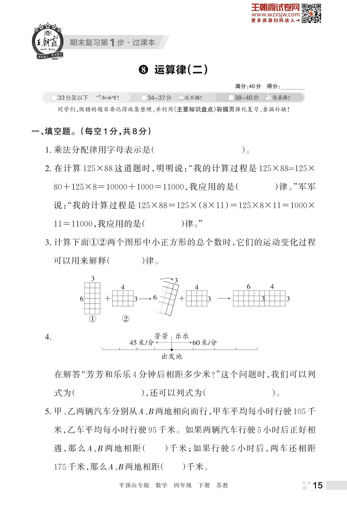 王朝霞期末过课本——8 运算律(二)四年级下册数学(苏教版)