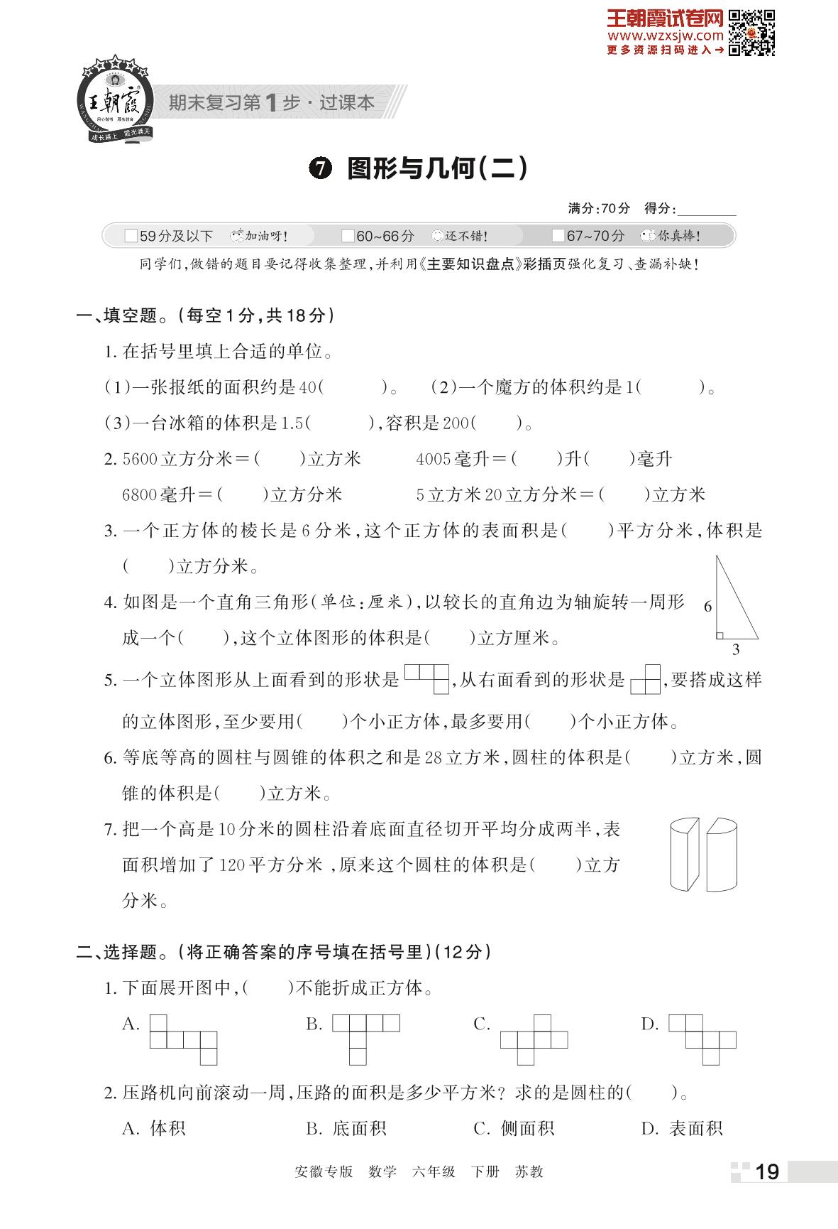 王朝霞期末过课本——7 图形与几何(二)六年级下册数学(苏教版)_R230421170824928