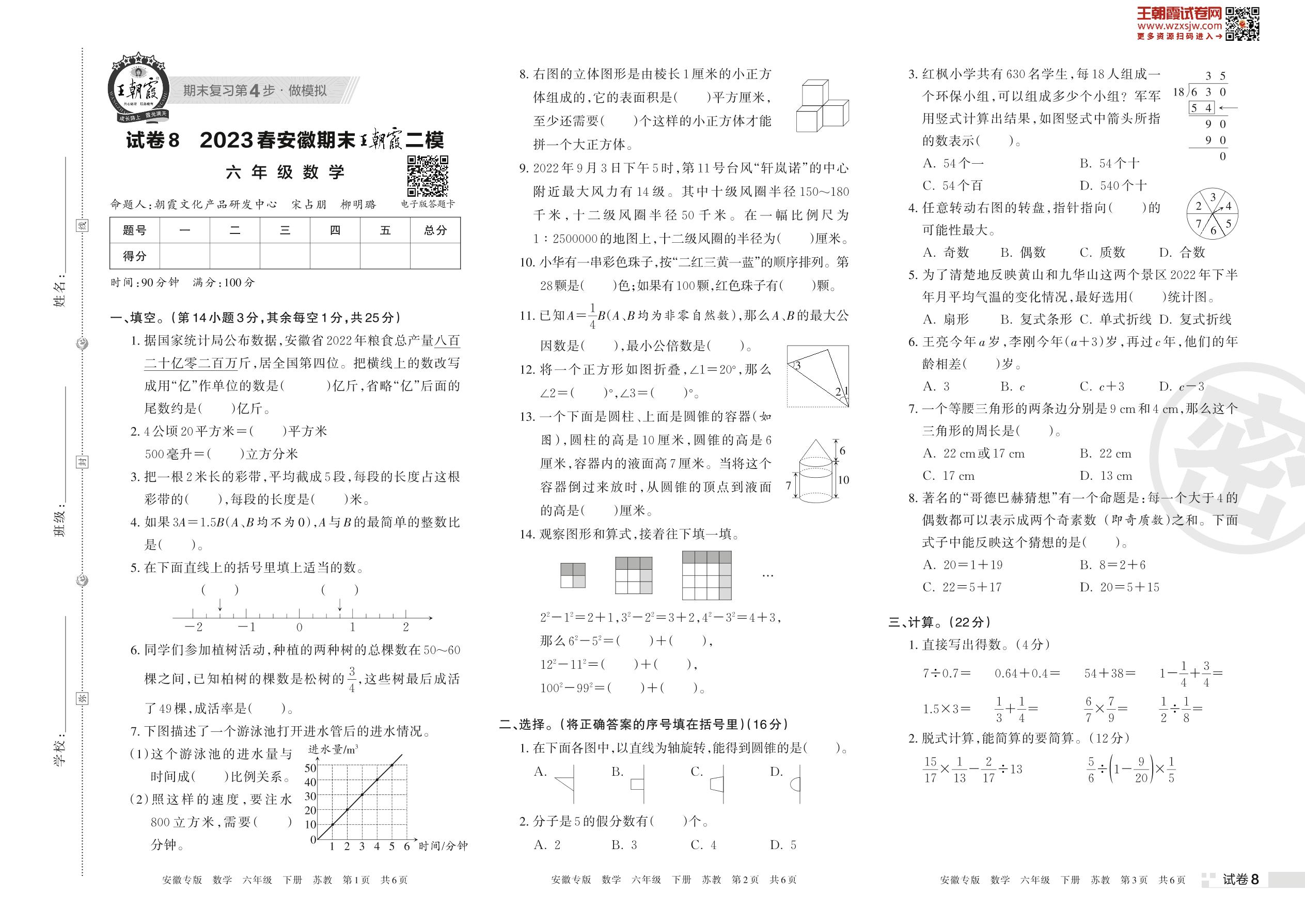 王朝霞期末模拟卷六年级下册数学(苏教版)_R230421170826639【8】