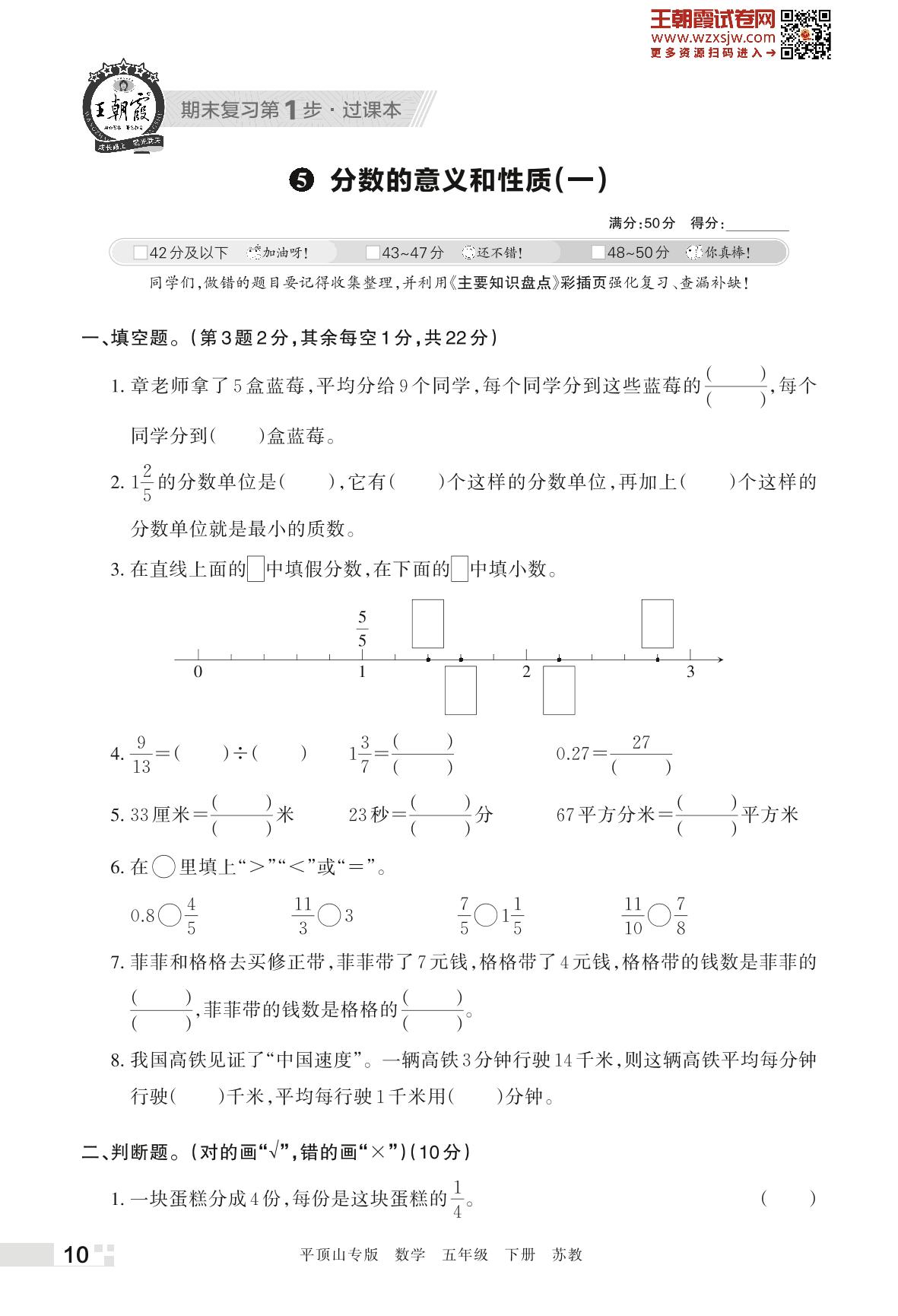 王朝霞期末过课本——5 分数的意义和性质(一)五年级下册数学(苏教版)