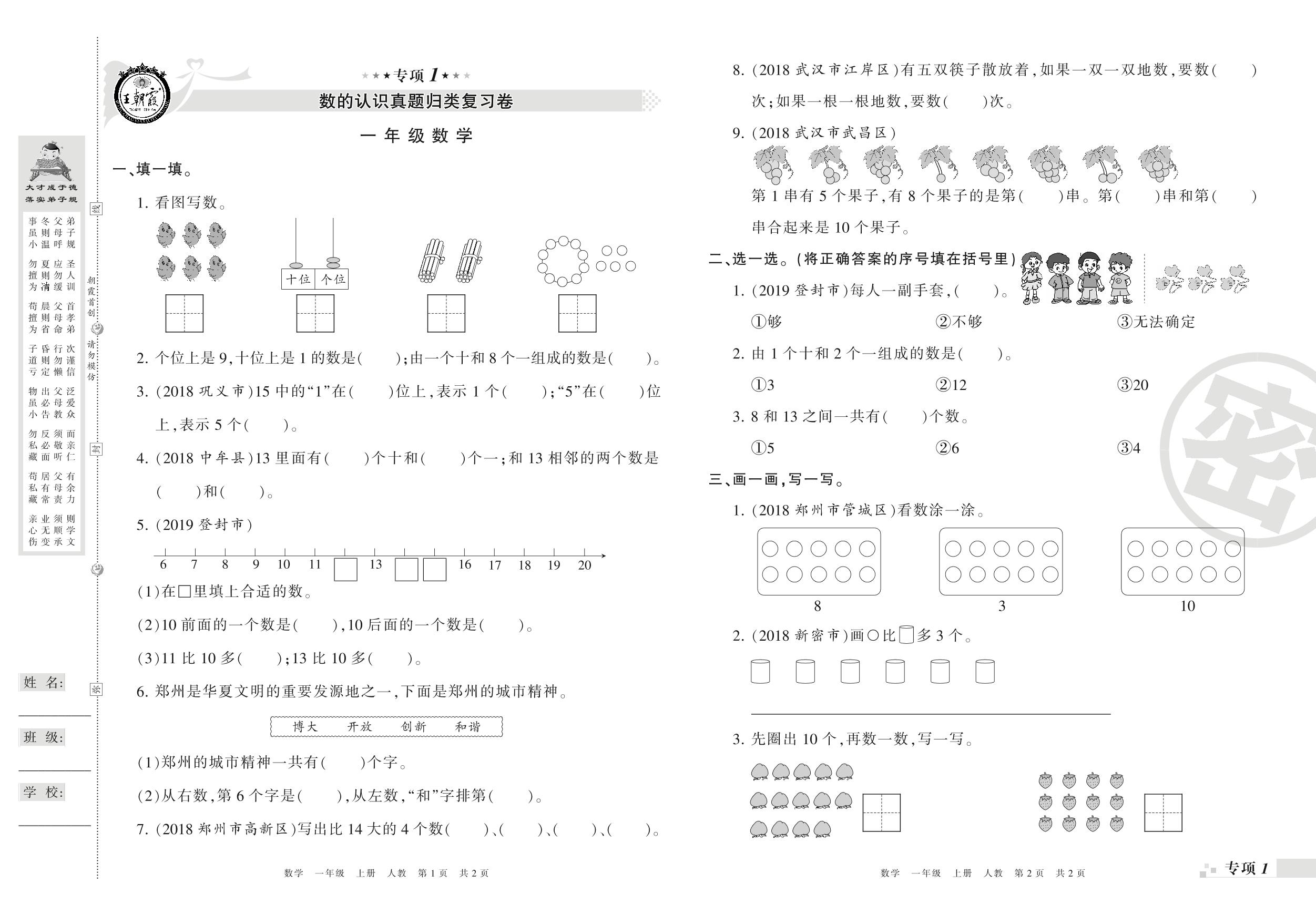 王朝霞期末专项卷——数的认识、计算真题归类复习一年级上册数学(人教版)_R210802215432【0】