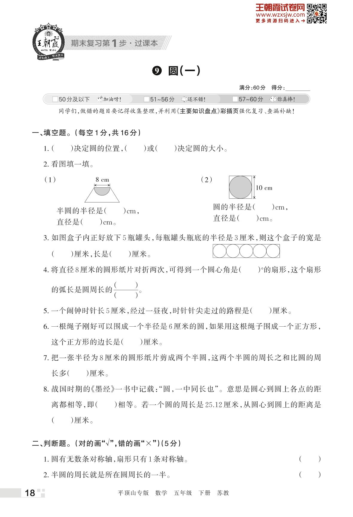 王朝霞期末过课本——9 圆(一)五年级下册数学(苏教版)