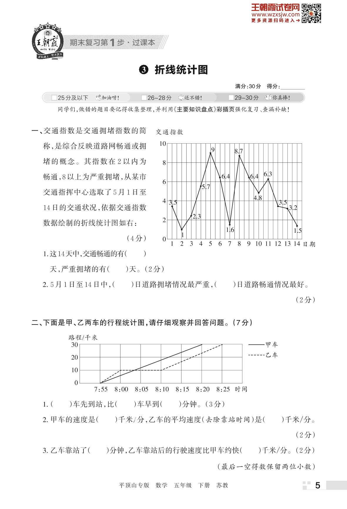 王朝霞期末过课本——3 折线统计图五年级下册数学(苏教版)