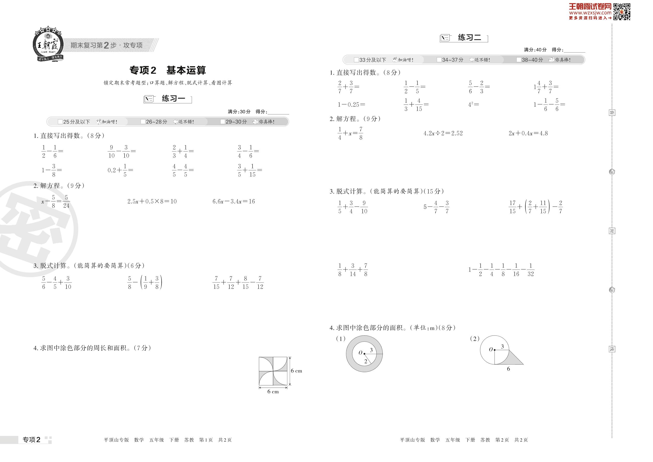 王朝霞期末专项卷——基本运算五年级下册数学(苏教版)_R230421171553545【2】