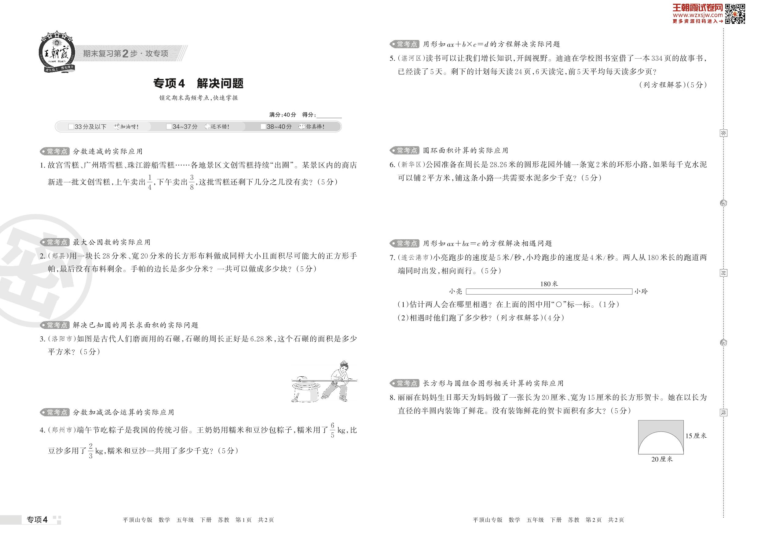 王朝霞期末专项卷——解决问题五年级下册数学(苏教版)_R230421171554886【4】