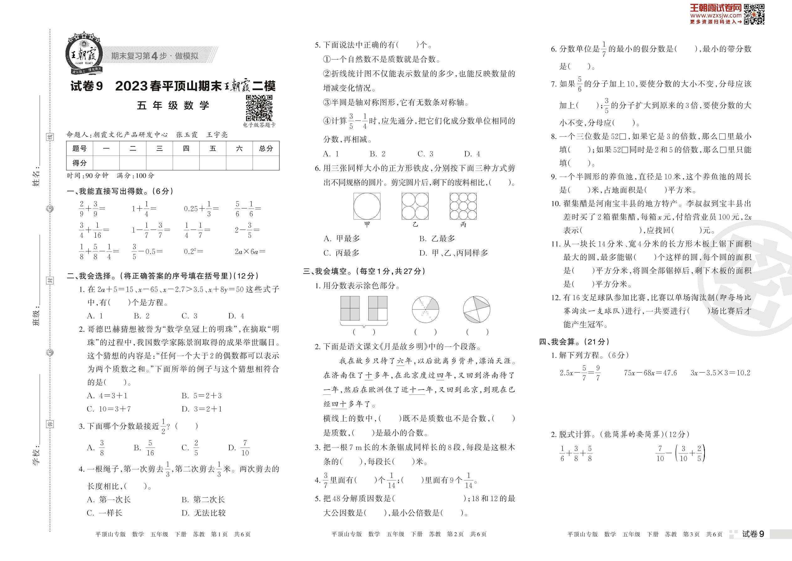 王朝霞期末模拟卷五年级下册数学(苏教版)_R230421171555285【9】