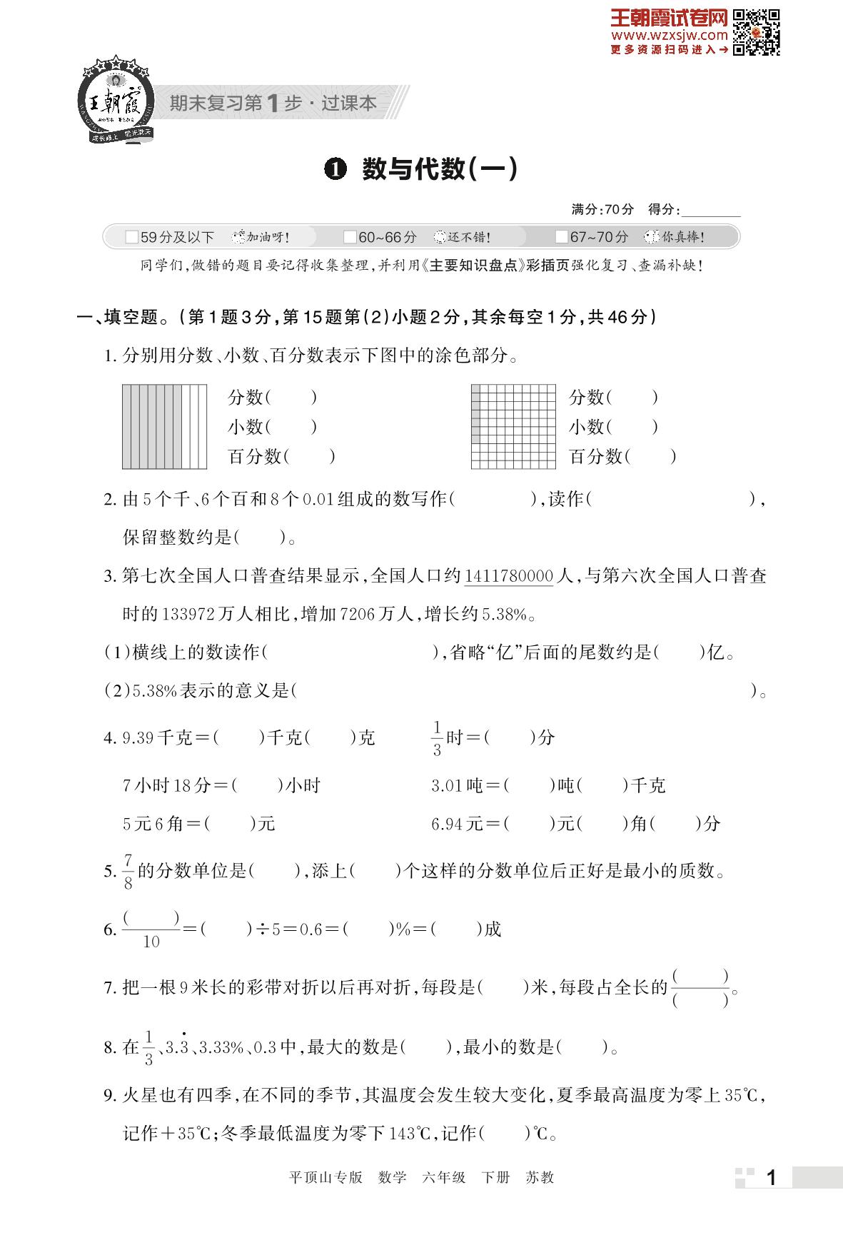 王朝霞期末过课本——1 数与代数(一)六年级下册数学(苏教版)
