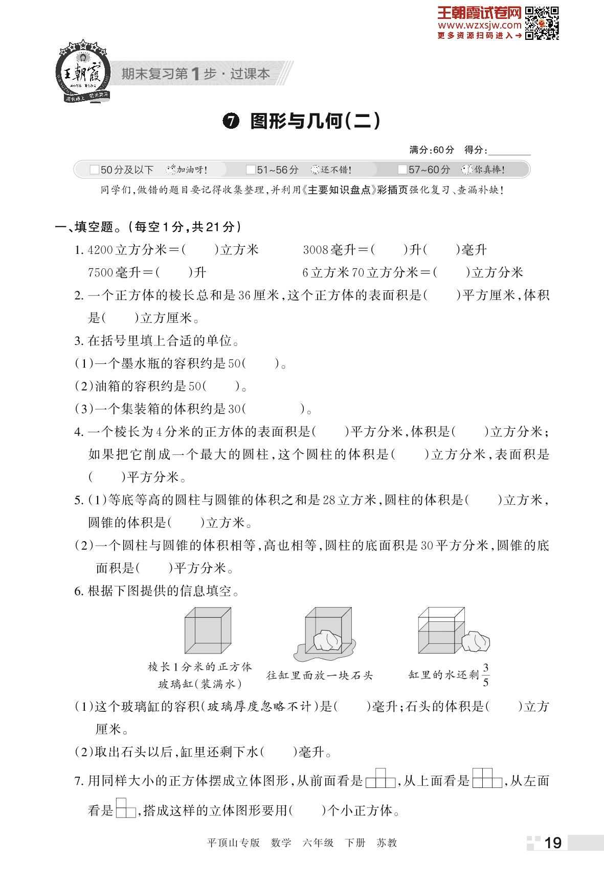 王朝霞期末过课本——7 图形与几何(二)六年级下册数学(苏教版)