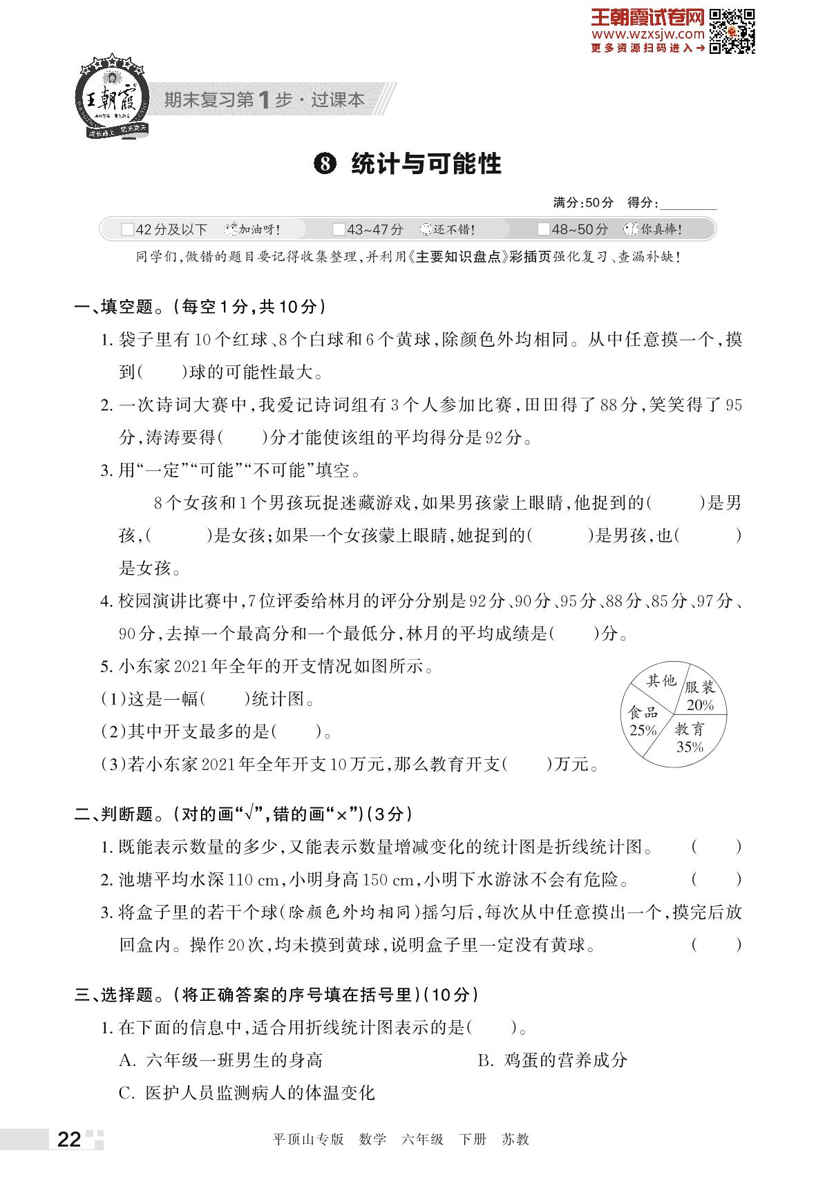 王朝霞期末过课本——8 统计与可能性六年级下册数学(苏教版)