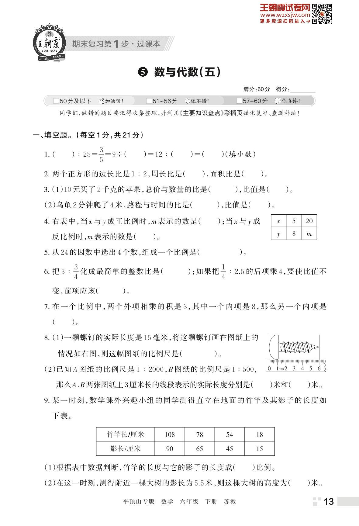 王朝霞期末过课本——5 数与代数(五)六年级下册数学(苏教版)