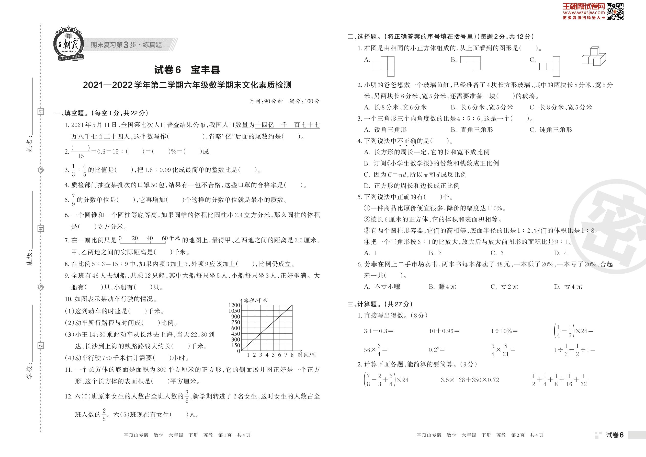 宝丰县2021—2022学年第二学期六年级数学期末文化素质检测(苏教版)【6】