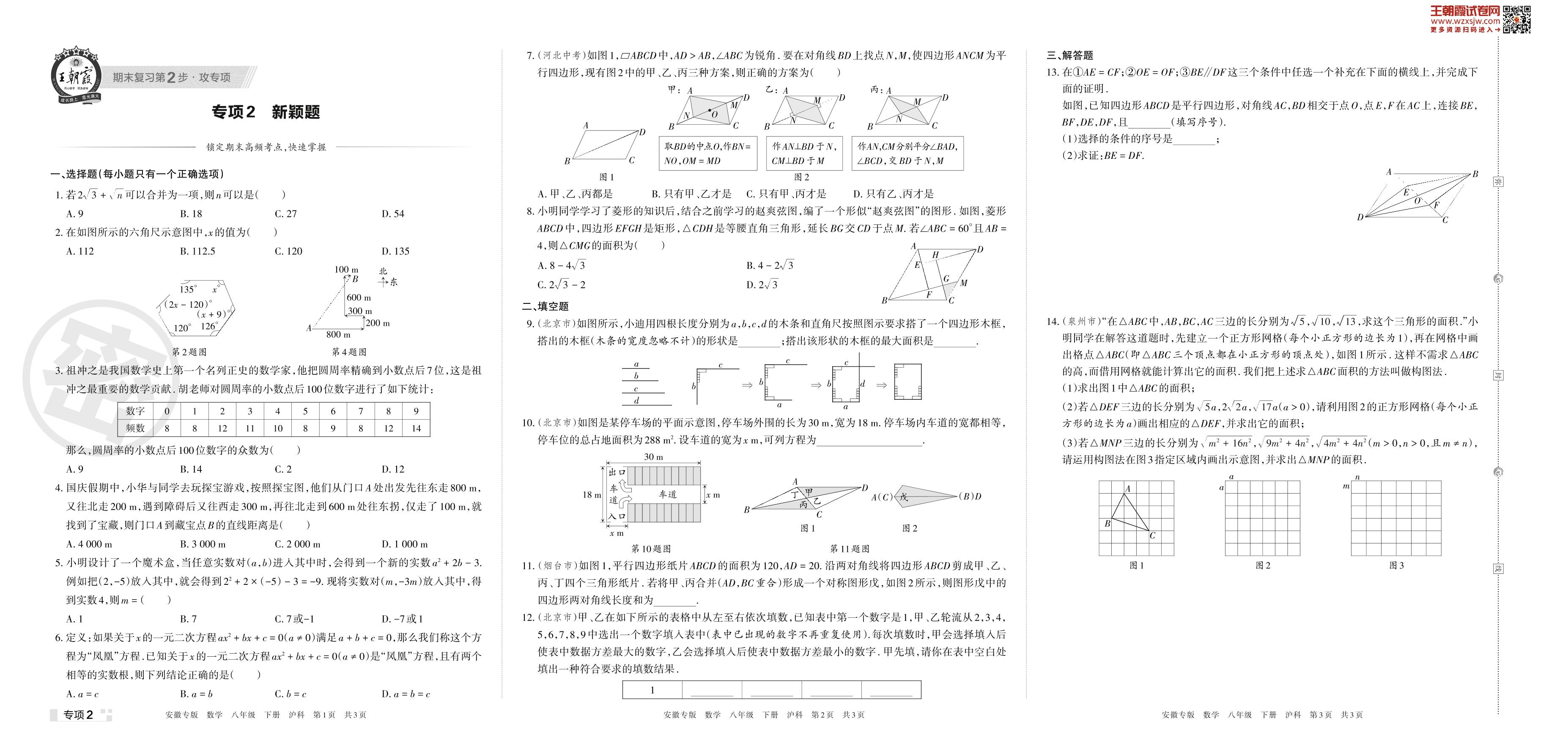 王朝霞期末专项卷——新颖题八年级下册数学(沪科版)【2】