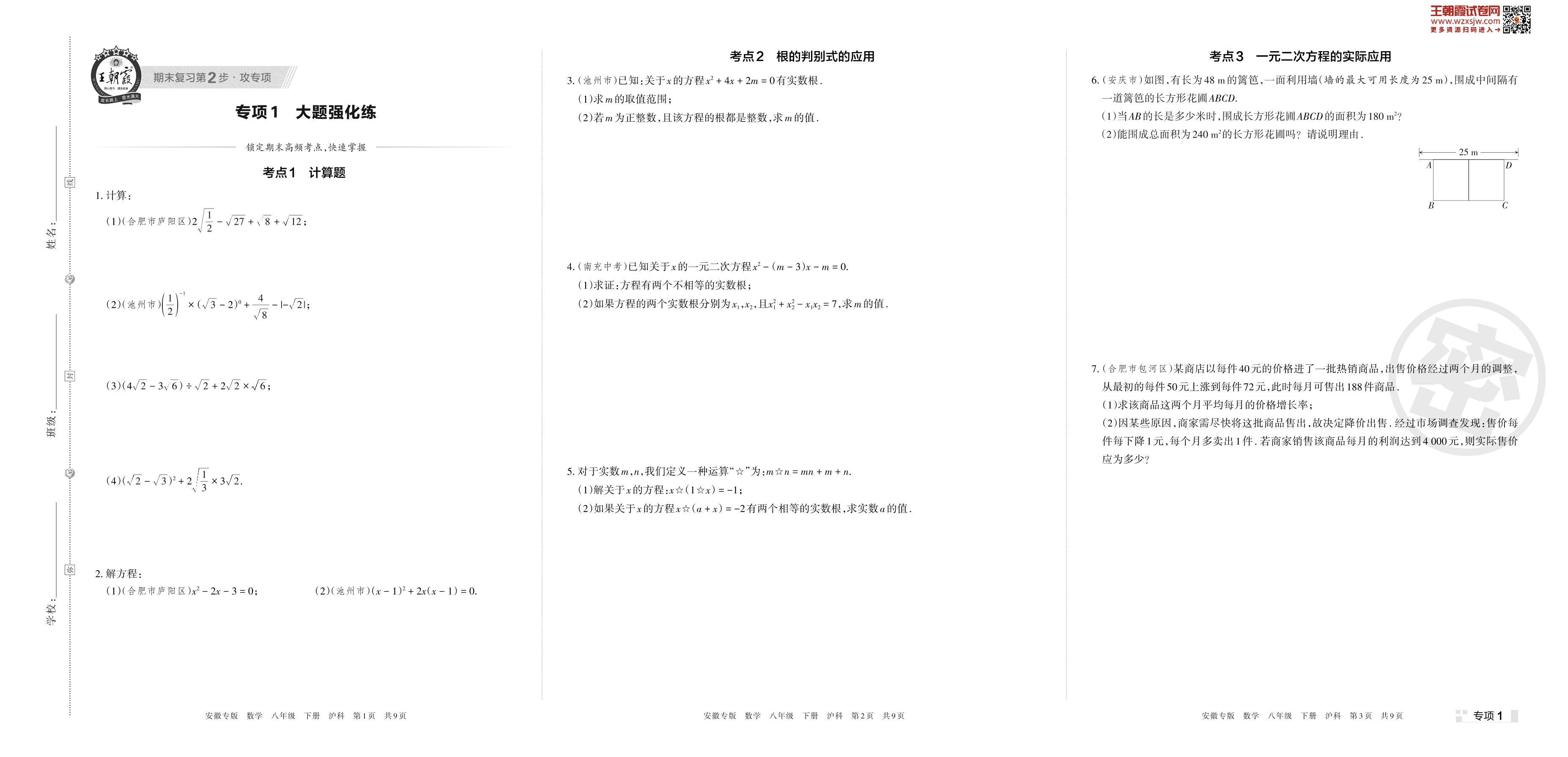 王朝霞期末专项卷——大题强化练八年级下册数学(沪科版)【1】