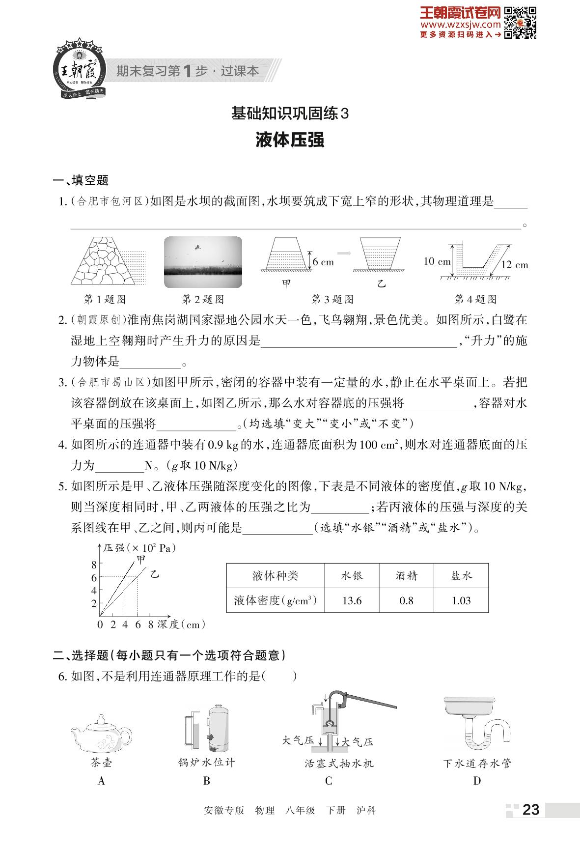 王朝霞期末过课本——基础知识巩固练3 液体压强八年级下册物理(沪科版)_R230421173003111