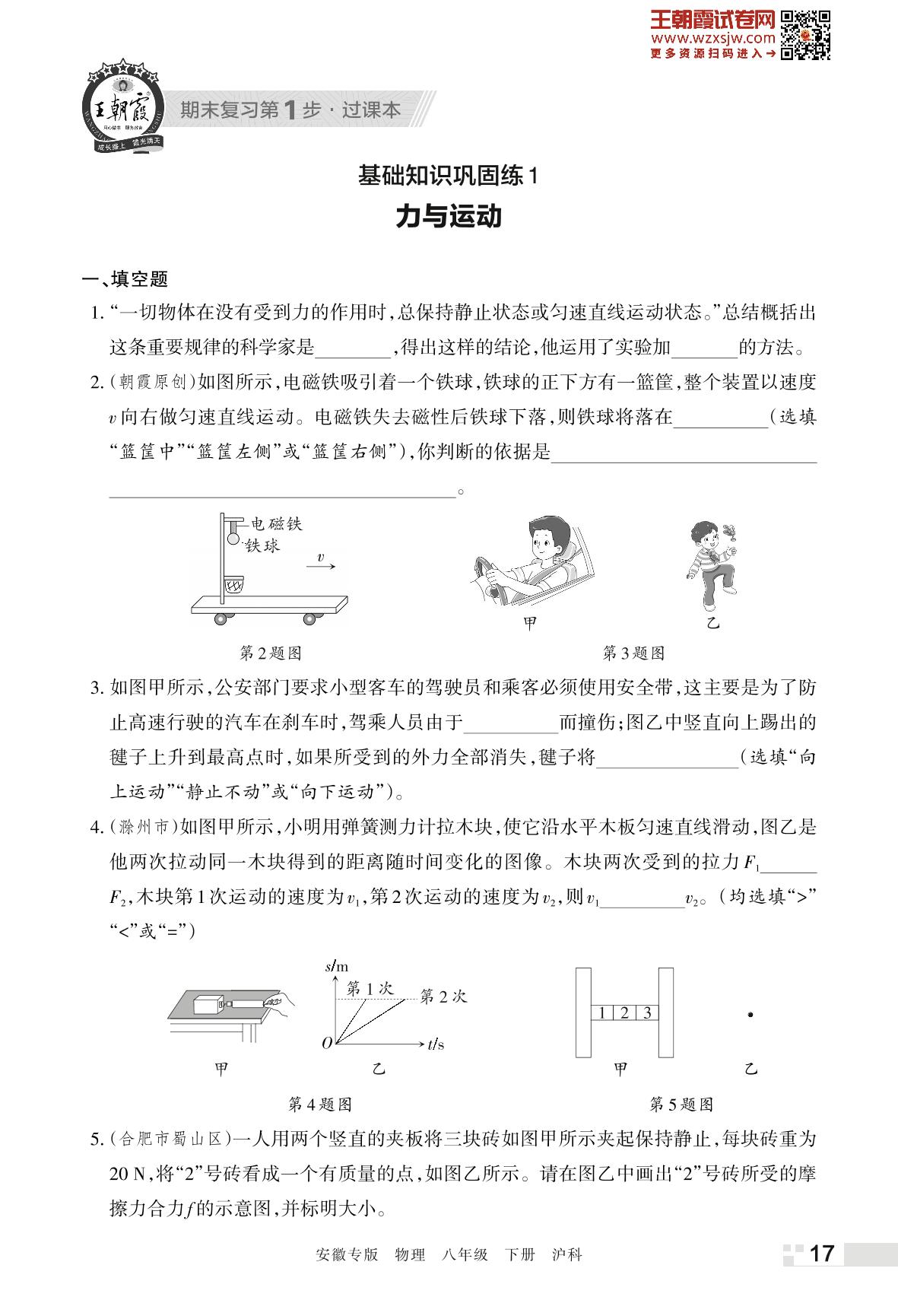 王朝霞期末过课本——基础知识巩固练1 力与运动八年级下册物理(沪科版)_R230421173003405