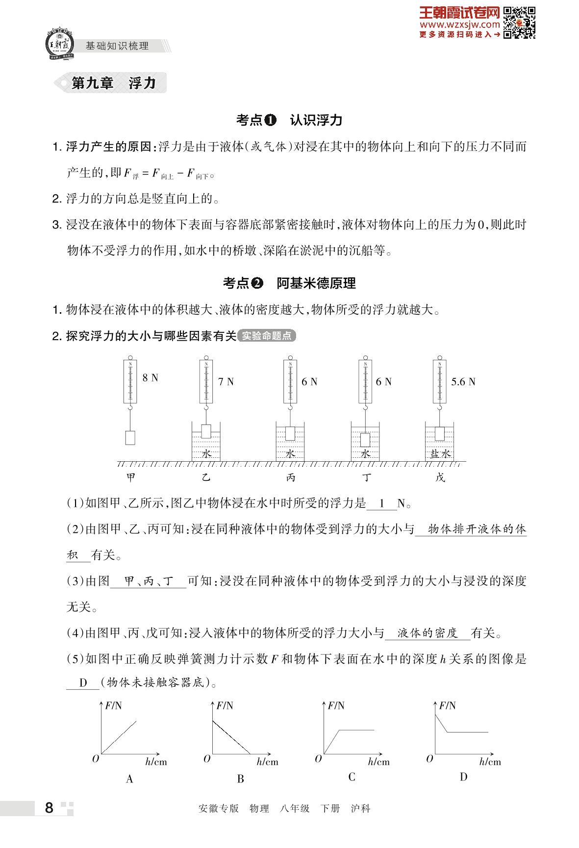 王朝霞期末知识梳理——第九章 浮力八年级下册物理(沪科版)