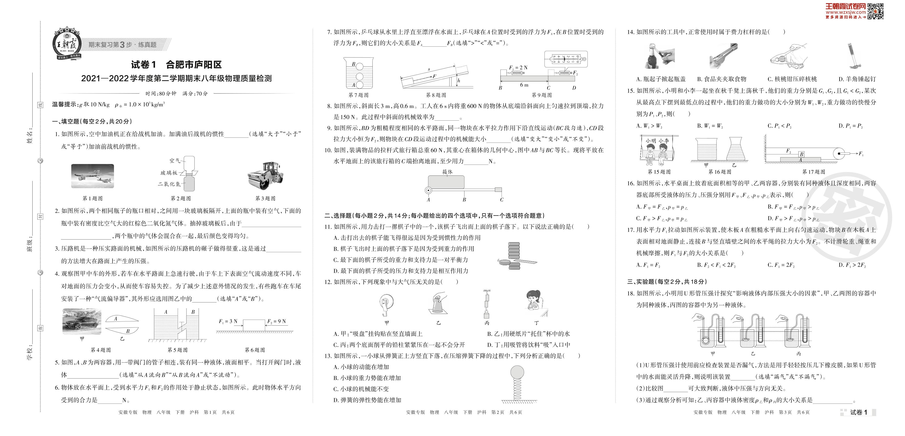 合肥市庐阳区2021—2022学年度第二学期期末八年级物理质量检测(沪科版)【1】