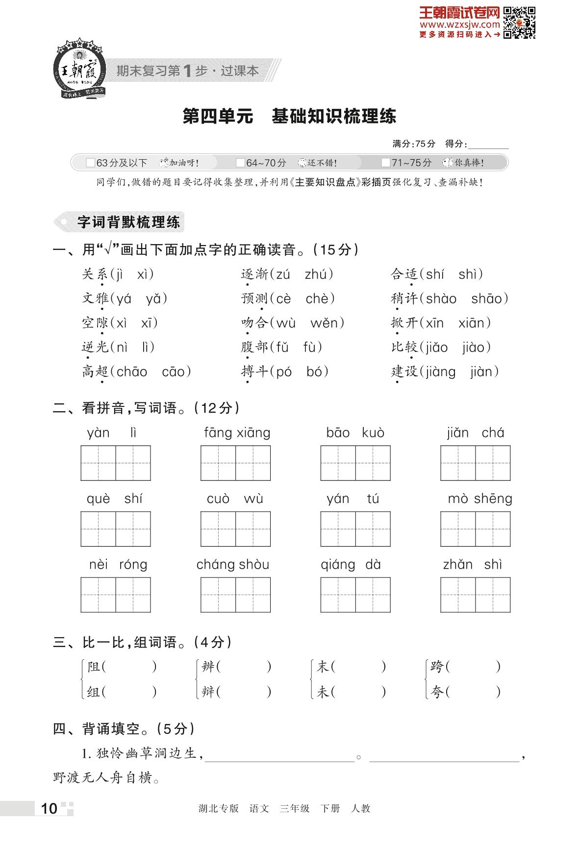 王朝霞期末过课本——第四单元 基础知识梳理练三年级下册语文(人教版)_R230423150958750