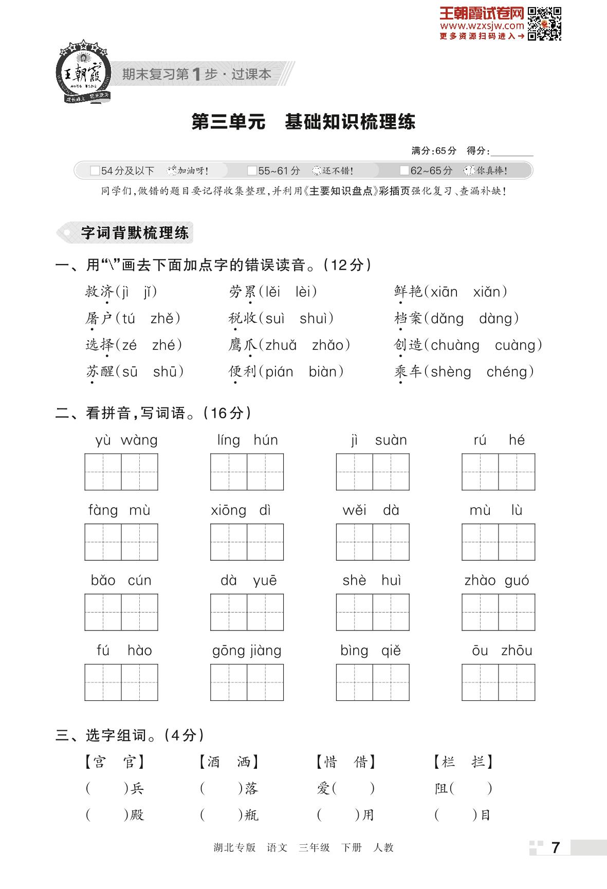 王朝霞期末过课本——第三单元 基础知识梳理练三年级下册语文(人教版)_R230423150958965
