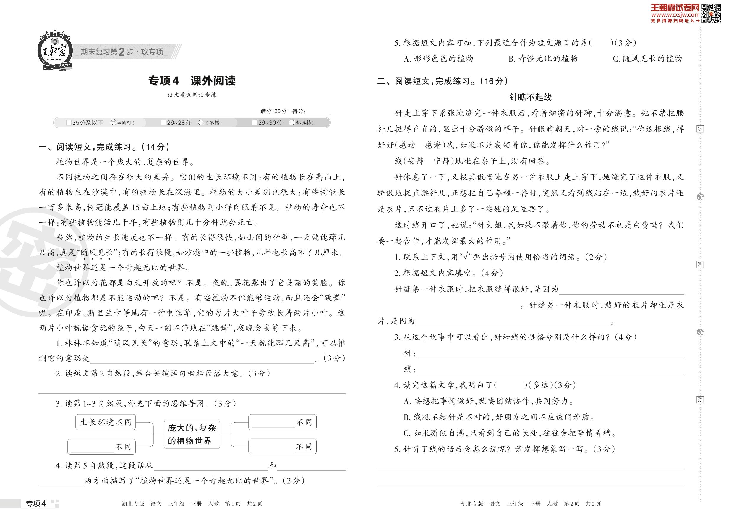 王朝霞期末专项卷——课外阅读三年级下册语文(人教版)_R230423150959734【4】