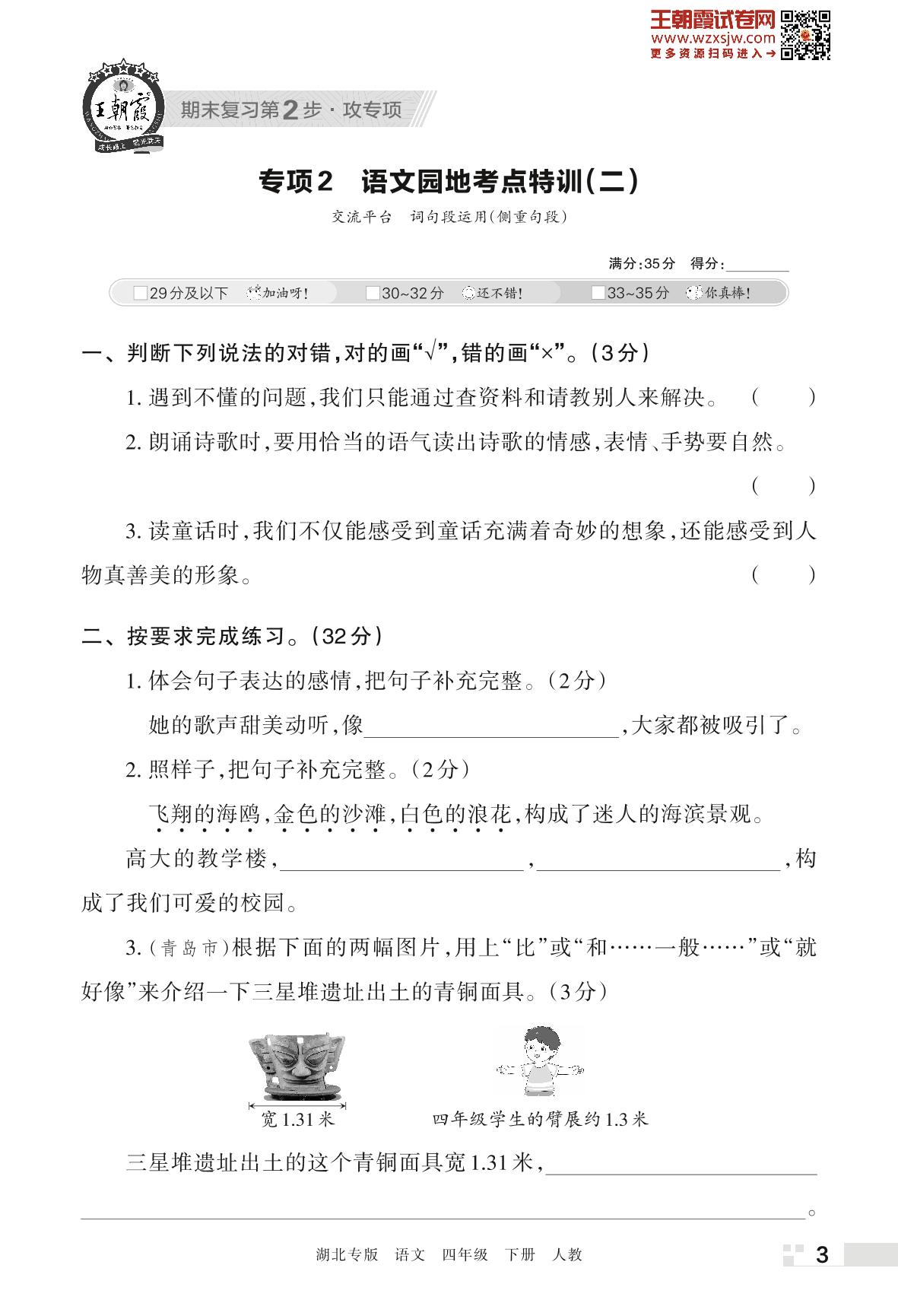 王朝霞期末专项卷——语文园地考点特训(二)四年级下册语文(人教版)_R230423151510216【2】