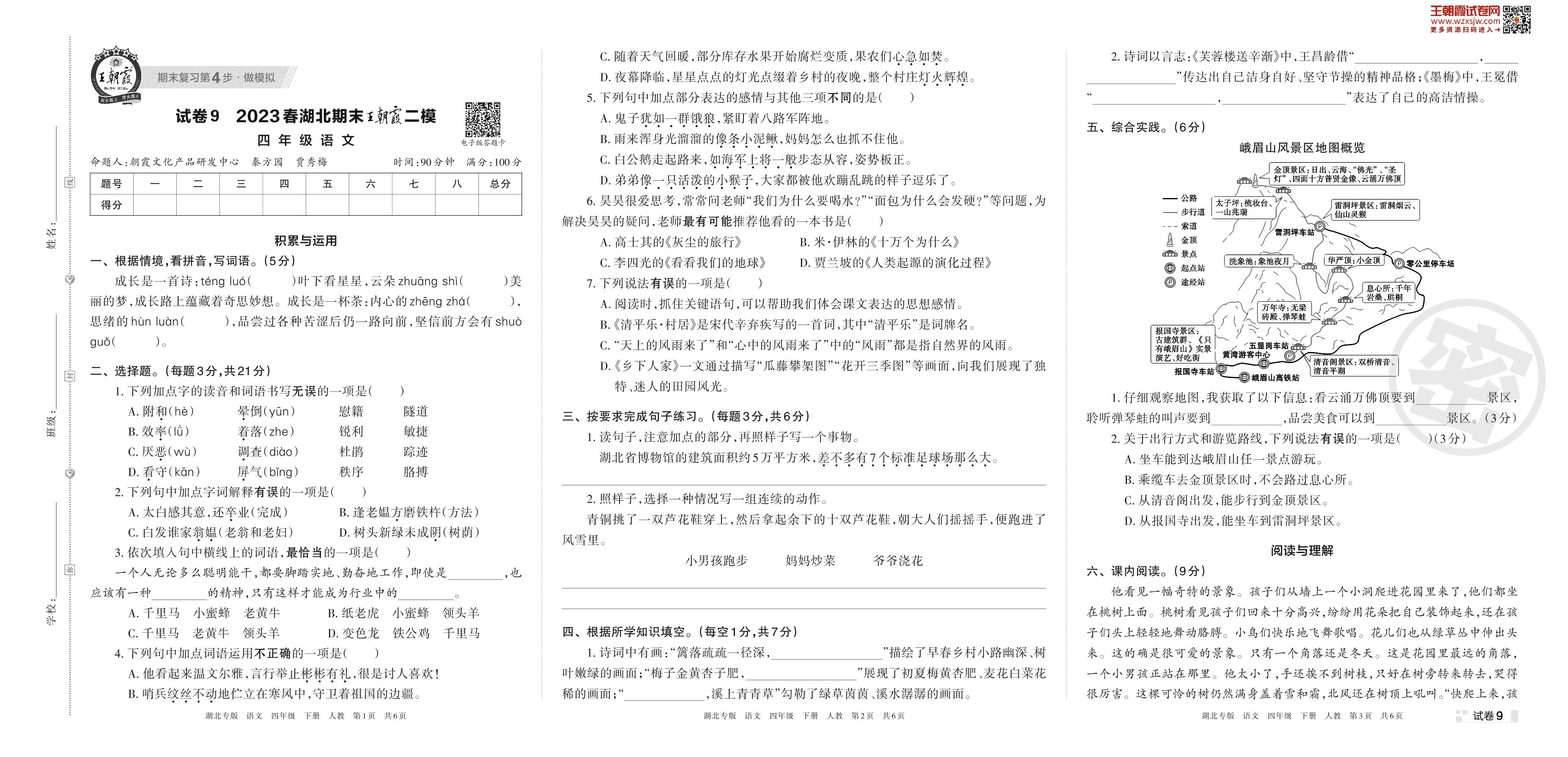 王朝霞期末模拟卷四年级下册语文(人教版)_R230423151511703【9】