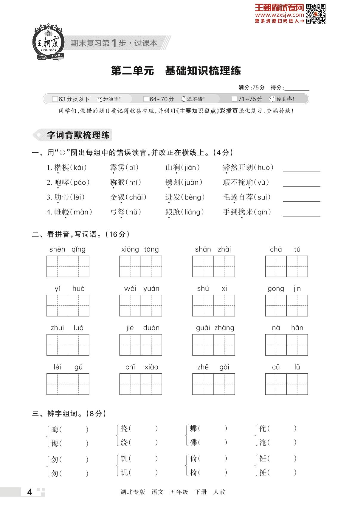 王朝霞期末过课本——第二单元 基础知识梳理练五年级下册语文(人教版)_R230423151957888