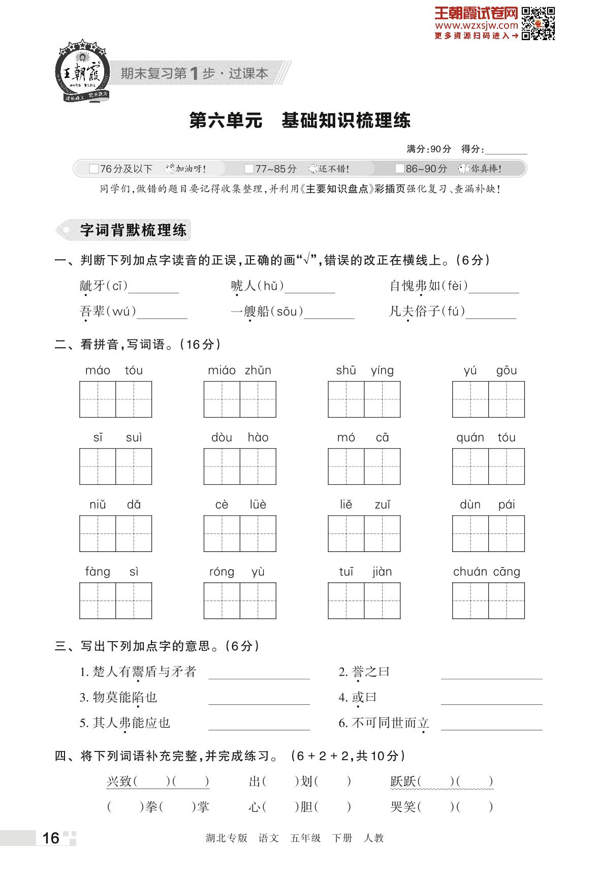 王朝霞期末过课本——第六单元 基础知识梳理练五年级下册语文(人教版)_R230423151957344