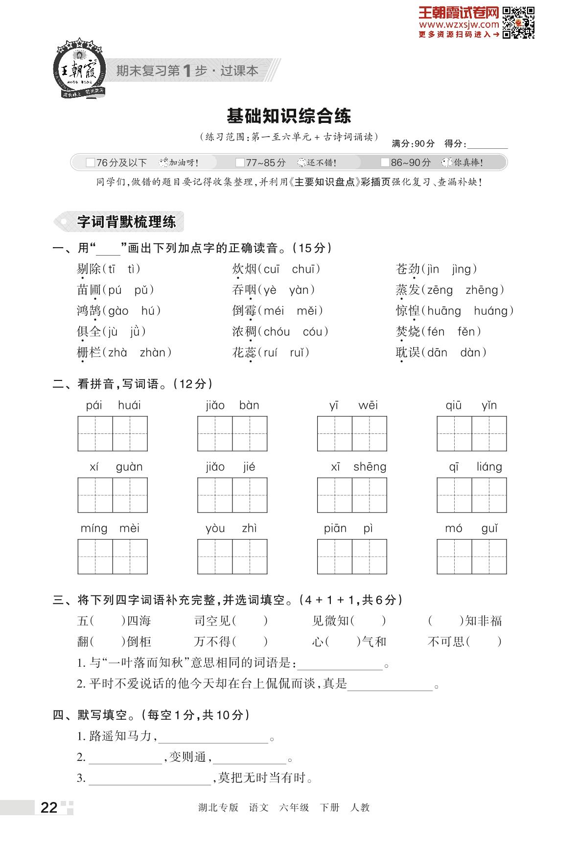 王朝霞期末过课本——基础知识综合练六年级下册语文(人教版)_R230423152515537