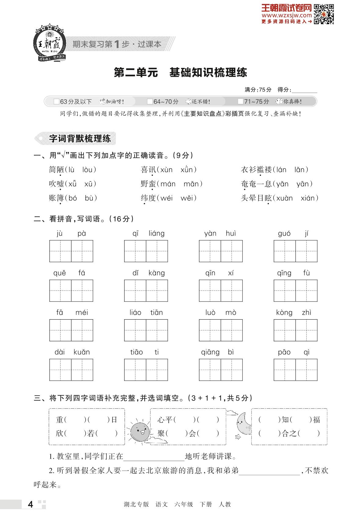 王朝霞期末过课本——第二单元 基础知识梳理练六年级下册语文(人教版)_R230423152516998