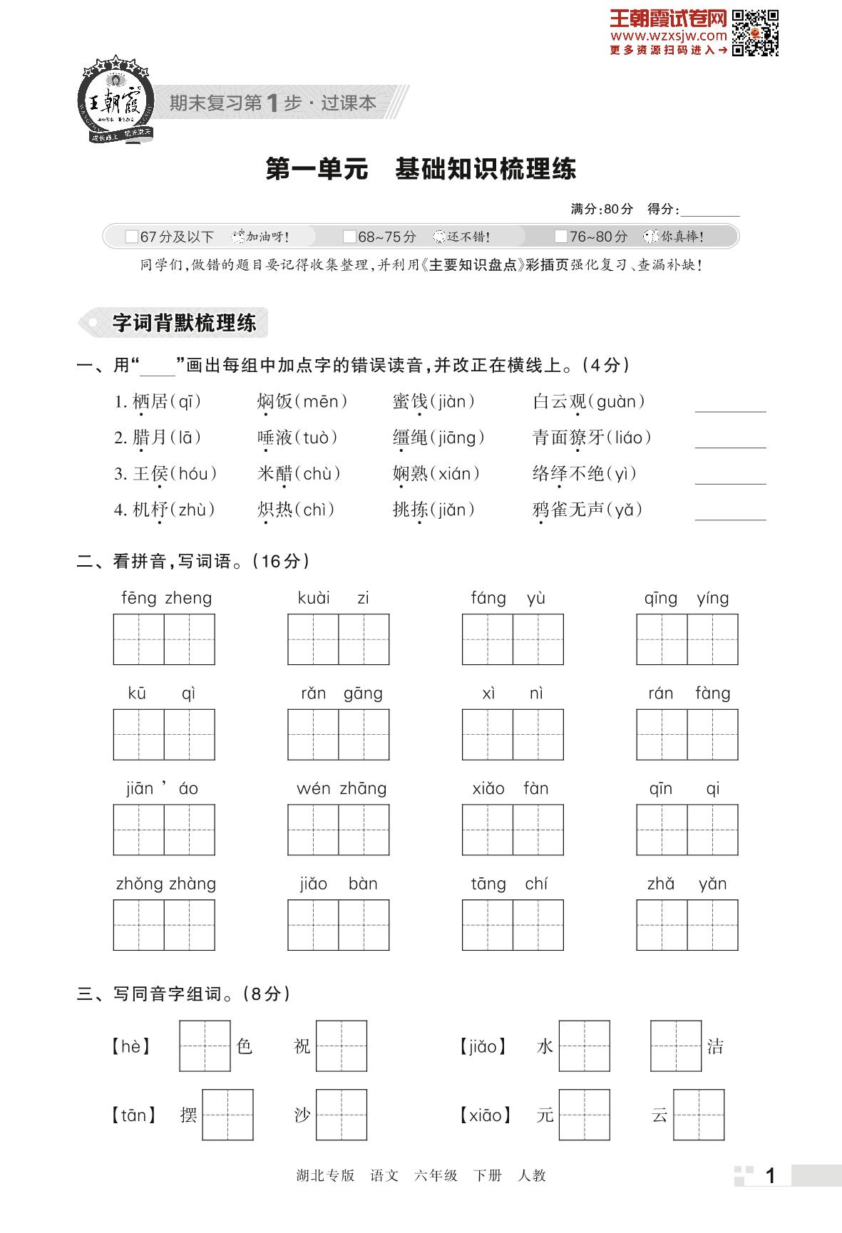 王朝霞期末过课本——第一单元 基础知识梳理练六年级下册语文(人教版)_R230423152516755