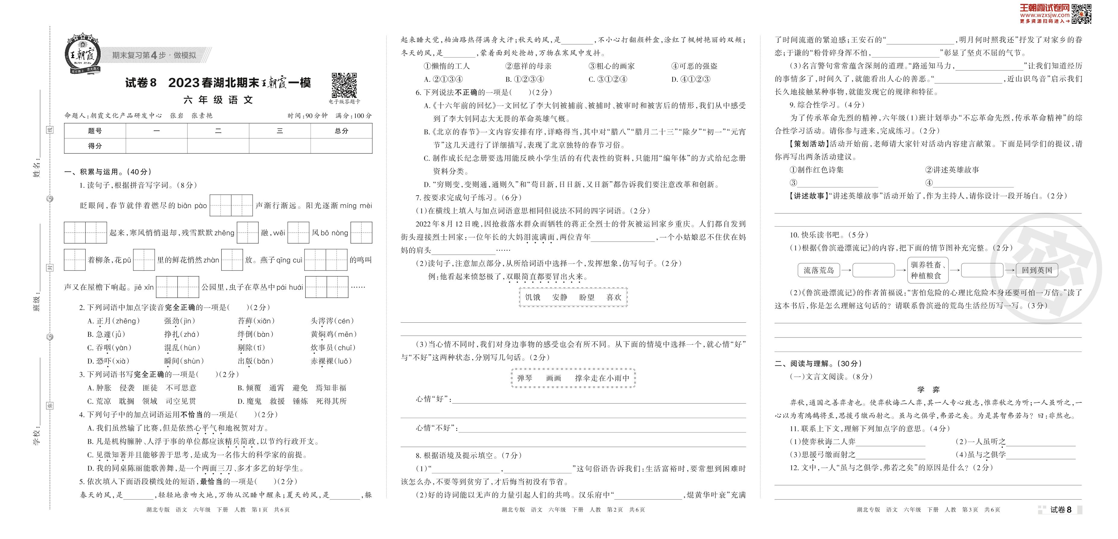 王朝霞期末模拟卷六年级下册语文(人教版)_R230423152518281【8】